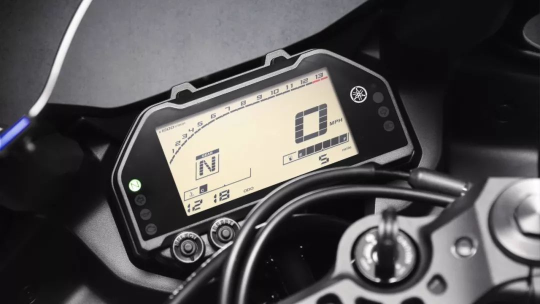 車體方面,采用了一副高強(qiáng)度的鋼管式車架、左右不對(duì)稱式設(shè)計(jì)的后搖臂,有一個(gè)與 YZF-R6、YZF-R1 相近風(fēng)格的車頭面譜造型,叉芯口徑為 37 mm 的 KYB 倒立式前叉,預(yù)加載可調(diào)的 KYB 后減震,LCD 數(shù)字式的儀表板等。