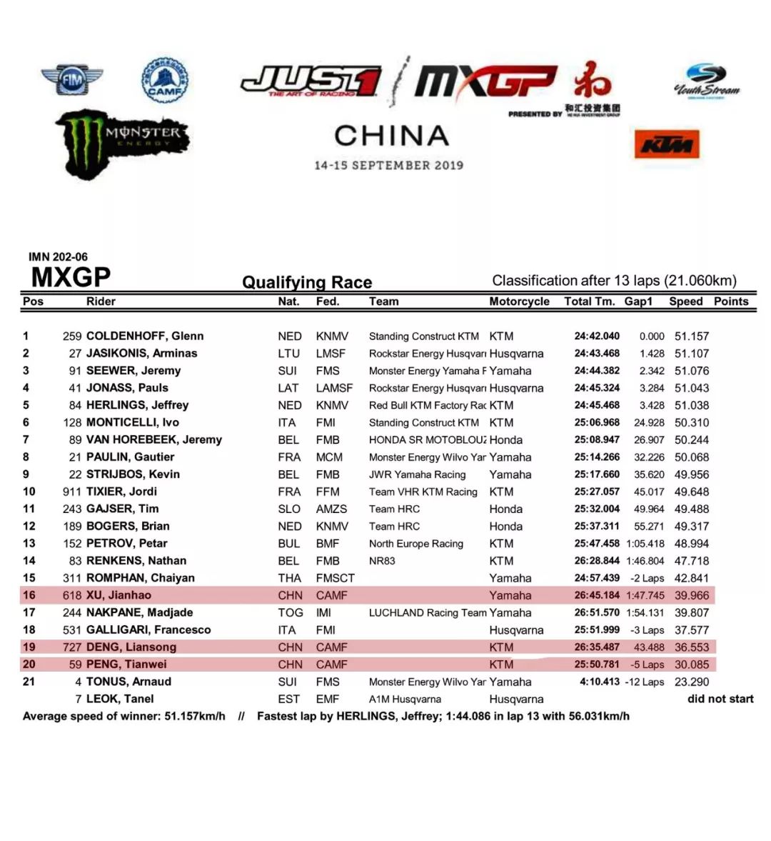 FIM 2019' MXGP 第十八站,Just 1 和匯. 世界越野錦標(biāo)賽中國(guó)站,九月 14 - 15 日在上海奉賢舉行。