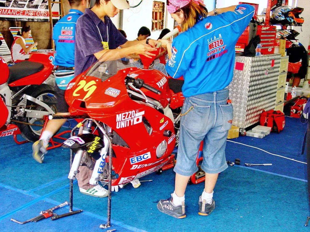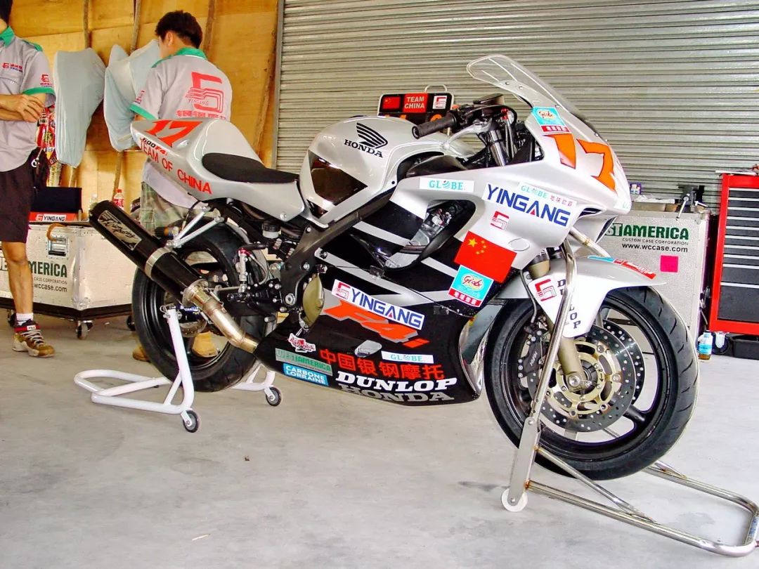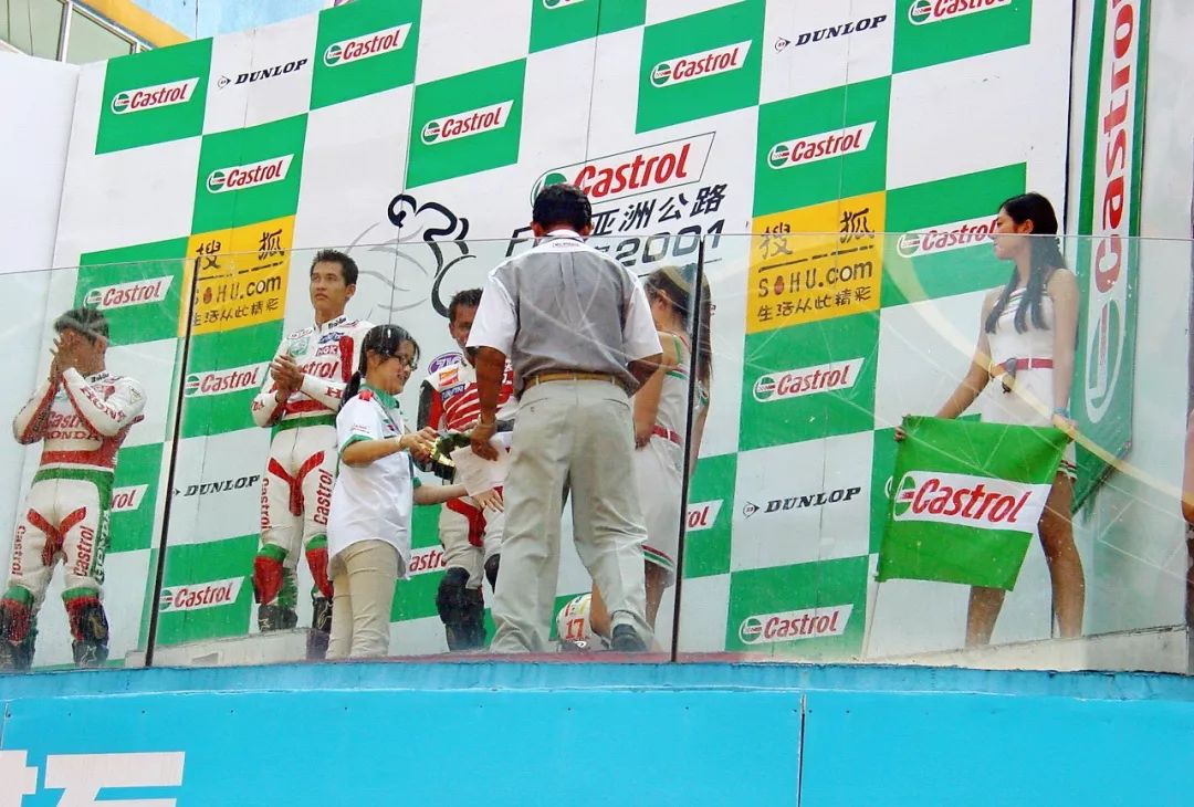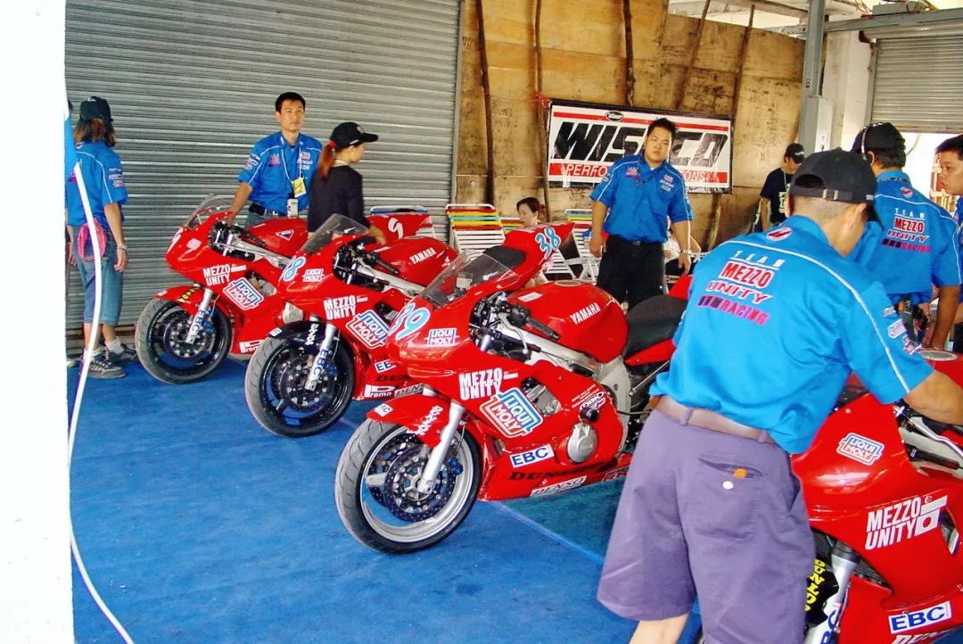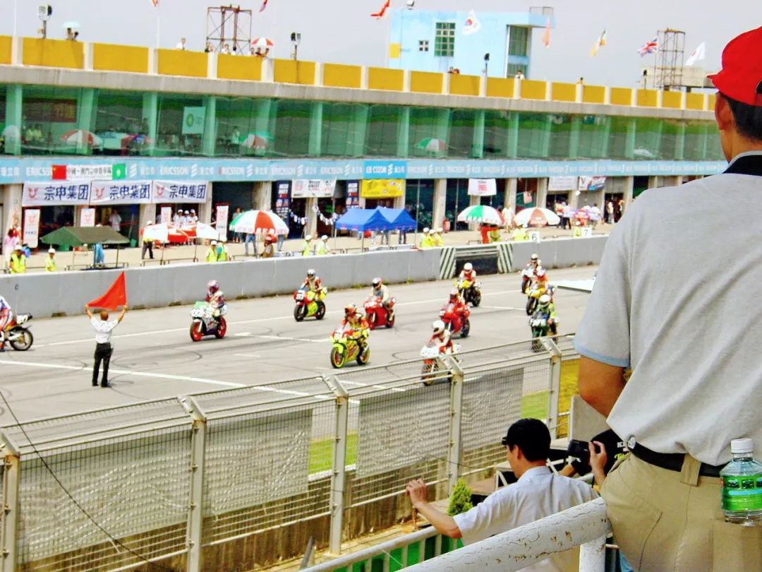 下面的圖片,是 2001 年九月 16 日、在珠海國際賽車場舉行的亞洲公路錦標賽。當(dāng)時的比賽,分為 UB115(后來變成了 UB135、再到現(xiàn)在的 UB150)、GP125、SS600 等多個級別,多支國內(nèi)的車隊參與了這場比賽。而這個比賽項目,是國內(nèi)當(dāng)時公路賽車競技水平最高的。