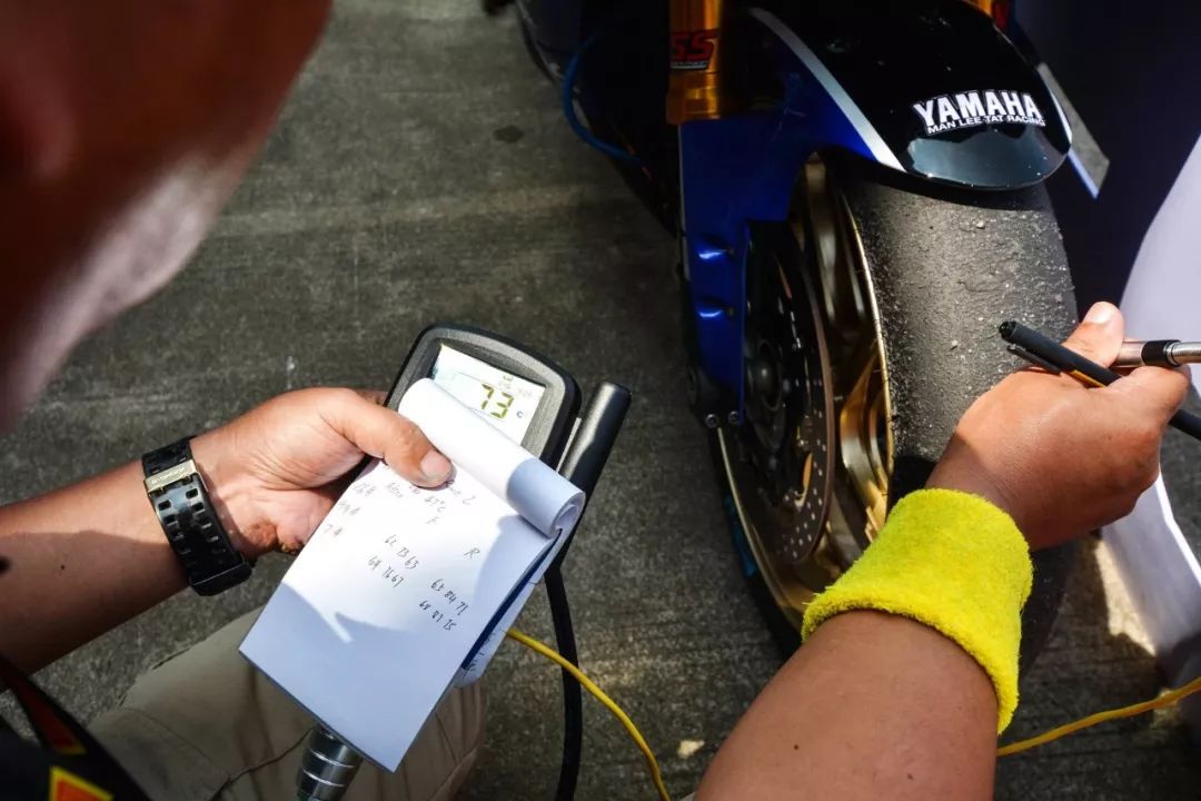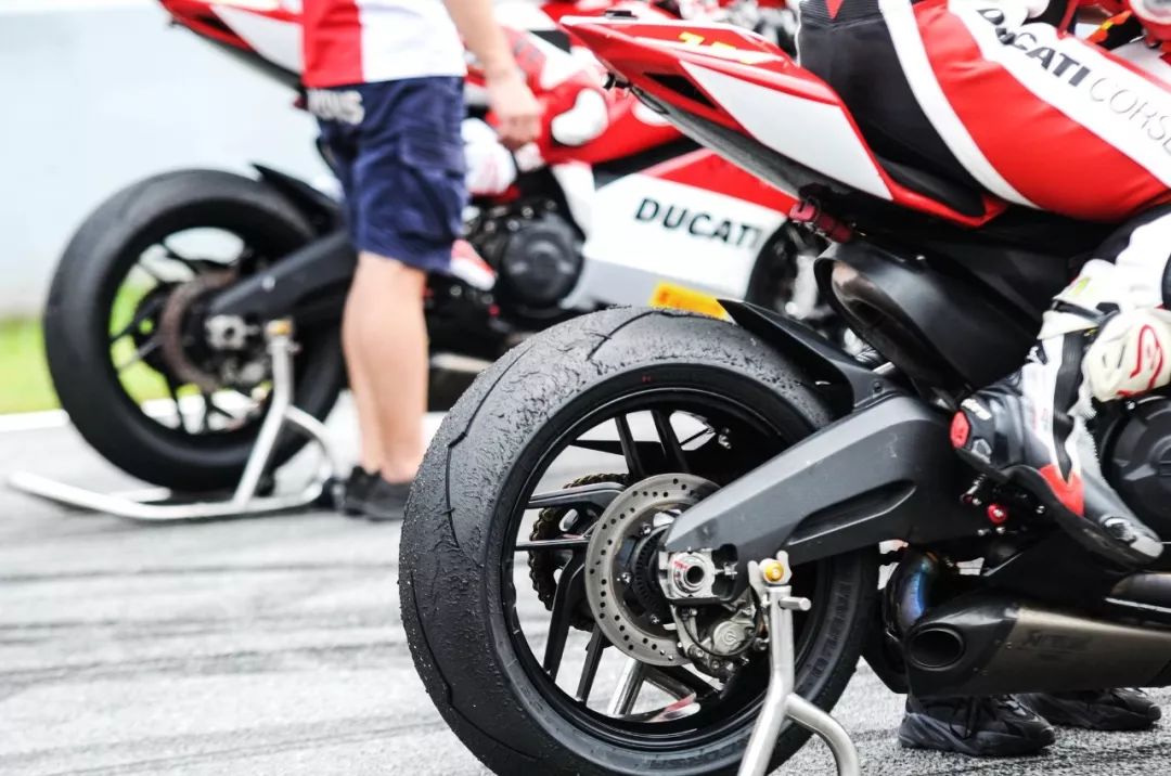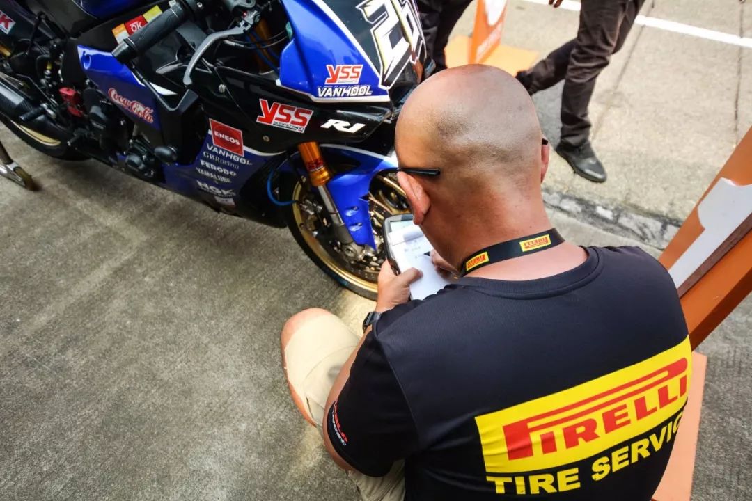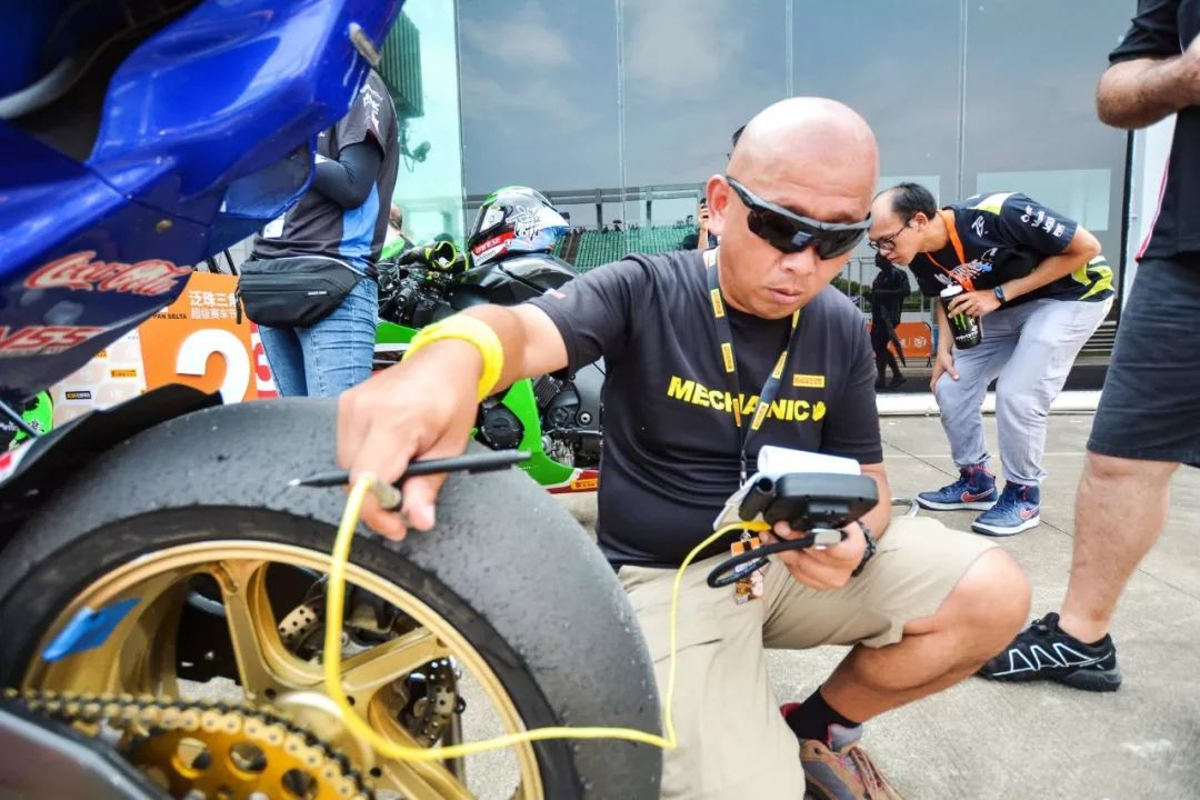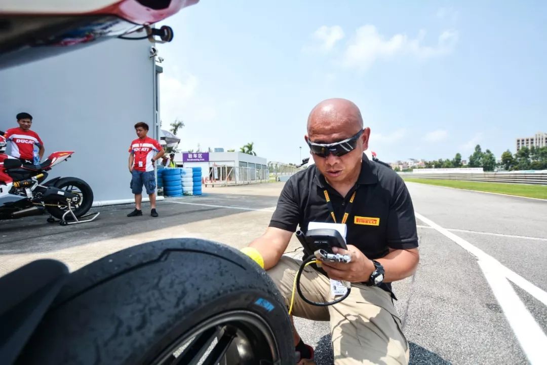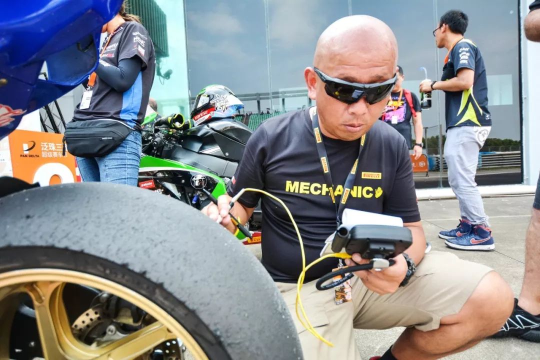 泛珠賽車節(jié)秋季賽的倍耐力的服務(wù) Pit 房,有專業(yè)人員和設(shè)備為車隊(duì)和車手們提供輪胎咨詢和更換服務(wù)。現(xiàn)場的倍耐力提供有干地適用的 DIABLO SUPERCORSA V2 (前胎規(guī)格:120/70-17 SC1,后胎規(guī)格:180/60-17 SC2)和濕地適用的 DIABLO RAIN(前胎規(guī)格:120/70-17,后胎規(guī)格:190/60-17)。但泛珠秋季賽比賽期間,沒有出現(xiàn)往年常有的雷雨天氣,賽場練習(xí)與比賽基本是在干地進(jìn)行,故本場的比賽主要使用干地輪胎。