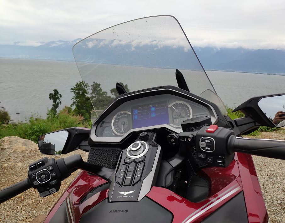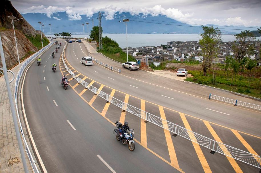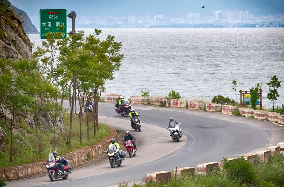 第二天的行程為從大理古城出發(fā),先是環(huán)繞洱海,然后途徑鄧川到達(dá)麗江,全程也在300km左右。與前一天不同的是,22號(hào)天氣終于放晴,大家也可以脫下雨衣,盡情騎行。當(dāng)然,筆者最開(kāi)心的,是今天可以騎大金翼了!比起昨天的X-ADV,金翼有著堪稱(chēng)“移動(dòng)沙發(fā)”的舒適性,雖然新款金翼削減了坐墊的厚度和扶手大小,但仍然不妨礙它成為最舒適的兩輪車(chē)款。同時(shí)金翼還有著深不見(jiàn)底的動(dòng)力儲(chǔ)備、輕盈的操控體驗(yàn)、各種舒適化配置,騎著它進(jìn)行公路旅行,這種感覺(jué)很難去形容,反正筆者是開(kāi)心到飛起來(lái)了。