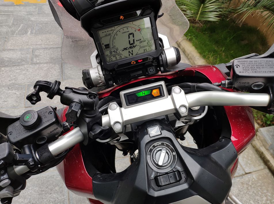 HSTC系統(tǒng)的加入也為這款車(chē)增加了更多安全性,控制鍵在車(chē)把左邊,兩檔可調(diào),也可關(guān)閉,對(duì)于一款低扭車(chē)型來(lái)說(shuō),這個(gè)功能真的很實(shí)用,在雨天山路上,幾次嘗試稍大給油以及出彎加速,都能看到TC指示燈在閃動(dòng),時(shí)刻為騎手保駕護(hù)航。這里提一下風(fēng)擋,雖然具備可調(diào)功能,但由于面積較小加上筆者189cm的身高,所以只有前胸有一些遮擋效果,前車(chē)甩起的泥水混著雨水打在頭盔面鏡上,三五分鐘就看不清了,筆者只好不停的擦拭,兩只手套全都濕了,此時(shí)筆者多么希望X-ADV能夠帶有手把加熱功能。