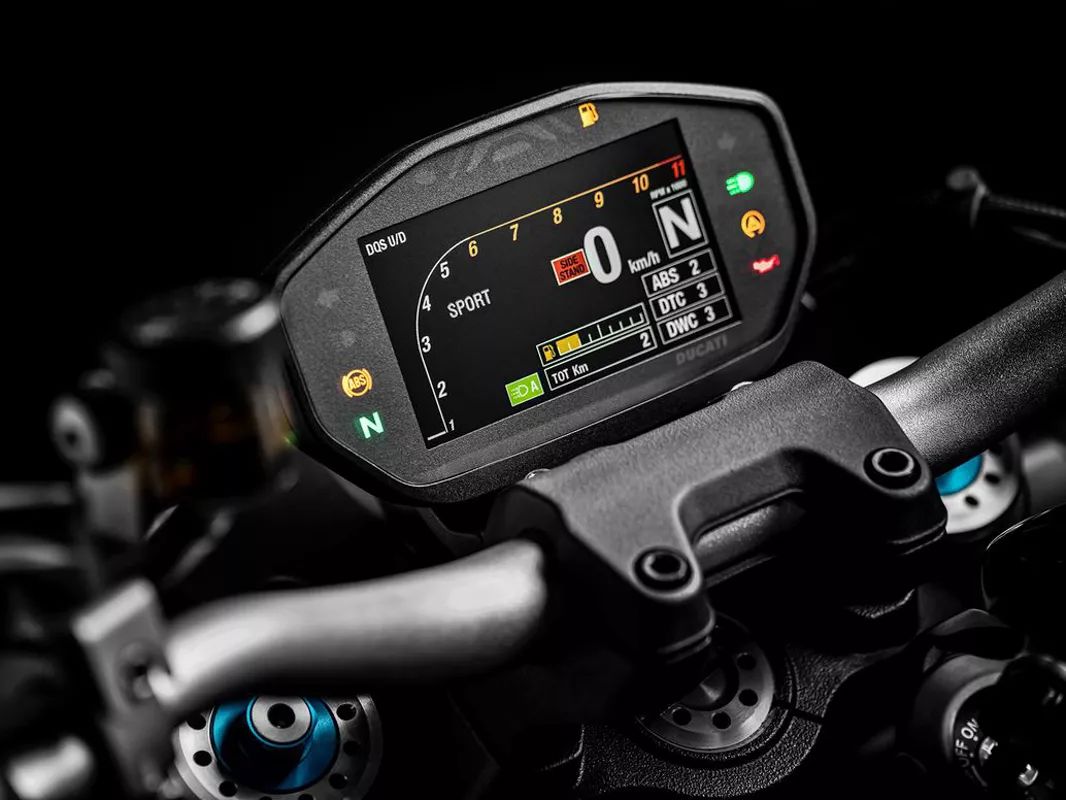 其中鍛造鋁合金的輪轂,三Y字造型的一邊漆上了DUCATI標(biāo)志性的鮮艷紅色。為了符合歐洲四期的環(huán)保標(biāo)準(zhǔn),所以他的馬力仍維持在147ps,依然配有了ABS、電子快速換擋和多項(xiàng)電控配備,如DSP 、DUCATI Safety Pack(9MP ABS + 8 Level DTC)、RbW(Ride-by Wire:電子油門)、及DDA 等。