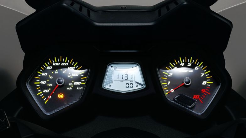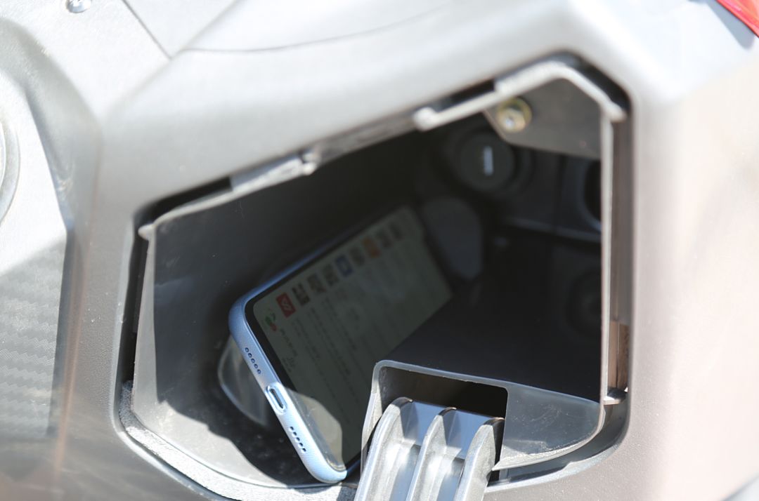 除了這些以外,JOYMAXZ 300還是位居家小能手,實(shí)用性方面表現(xiàn)突出。首先是超大的座桶空間,繼承了CRUiSYM 300的優(yōu)點(diǎn),可以放下兩頂全盔,這樣大容量的座桶在這個(gè)價(jià)位并不多見(jiàn)。中控右側(cè)的儲(chǔ)物盒內(nèi)配有USB接口,同時(shí)空間比較充裕,無(wú)論是橫豎放置都可以放下6.5英寸的手機(jī)。功能全面的雙環(huán)組合式儀表也為其加分不少,采用兩個(gè)指針式儀表搭配LCD液晶儀表的組合,左側(cè)指針式時(shí)速表還具有公里及英里雙讀數(shù)顯示。