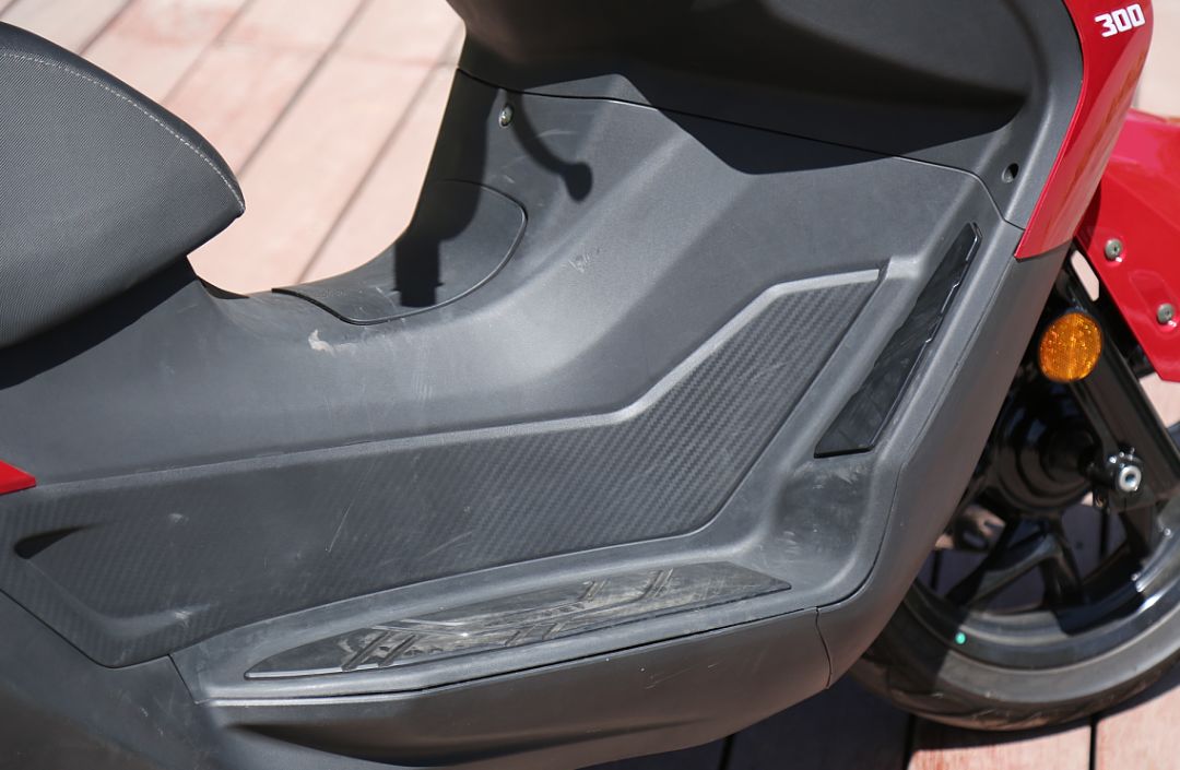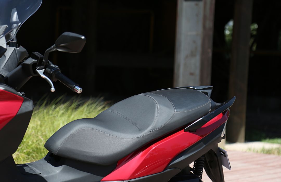 JOYMAX Z 300還擁有一塊兩段可調(diào)的大風(fēng)擋,可通過(guò)拆卸調(diào)節(jié),可以提供不錯(cuò)的風(fēng)阻保護(hù)。巡航腳踏的設(shè)置也可以讓駕駛者變換腿部姿勢(shì),緩解疲勞。JOYMAX Z 300的舒適性還體現(xiàn)在坐墊上,長(zhǎng)且寬大的坐墊對(duì)屁股非常友好,前坐墊前段收窄,方便駕駛者腳部著地,前座帶有腰靠,可以在路況良好時(shí)可以讓腰部向后靠在上面放松。不僅前座舒服,后座的舒適度也不會(huì)差,超長(zhǎng)的坐墊不僅使前后座都有非常寬裕的乘坐空間,厚實(shí)的海綿配合較軟的后減震,可以給你后座的乘客提供非常安心的乘坐感受。