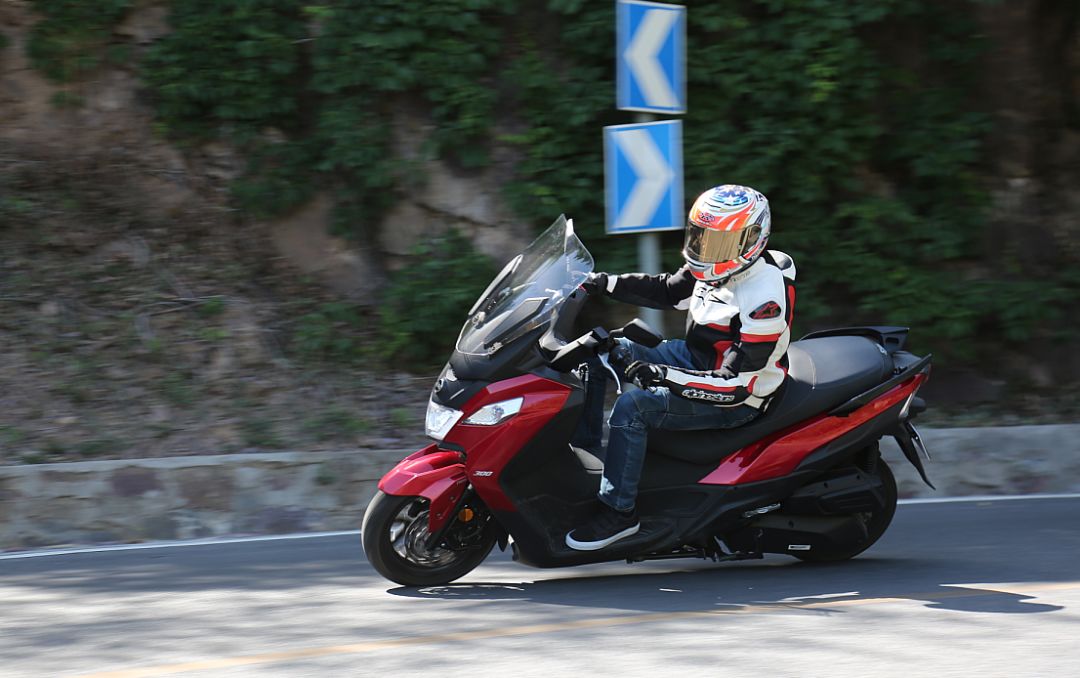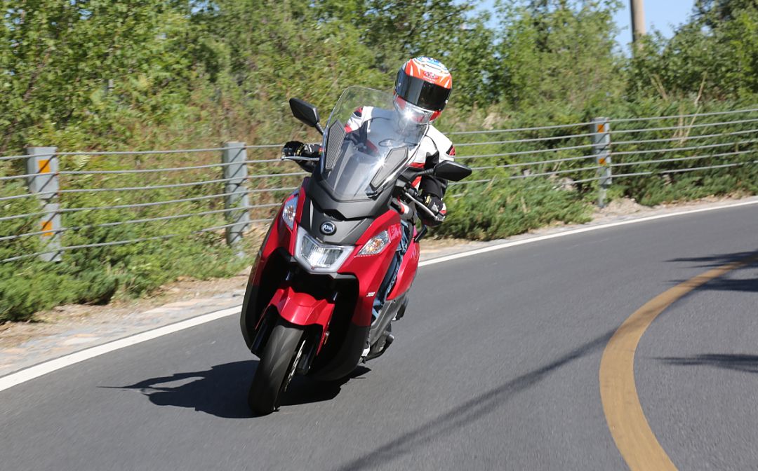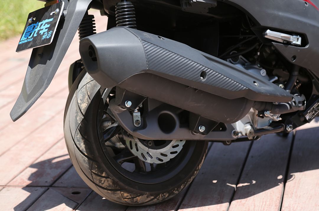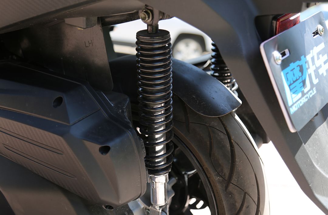 減震方面,JOYMAX Z300采用正立式前叉,后面為五段預(yù)載可調(diào)的雙后減震。前后減震彈簧K值都偏小,減震阻尼設(shè)定適中,對(duì)小的顛簸濾震性較好。后減震采用了雙線距彈簧,在雙載的時(shí)候,隨著荷重的加大仍然能夠提供不錯(cuò)的支撐性,遇到顛簸也不容易發(fā)生減震到底的狀況,從這點(diǎn)來(lái)看減震調(diào)校也是緊扣休旅的設(shè)定。