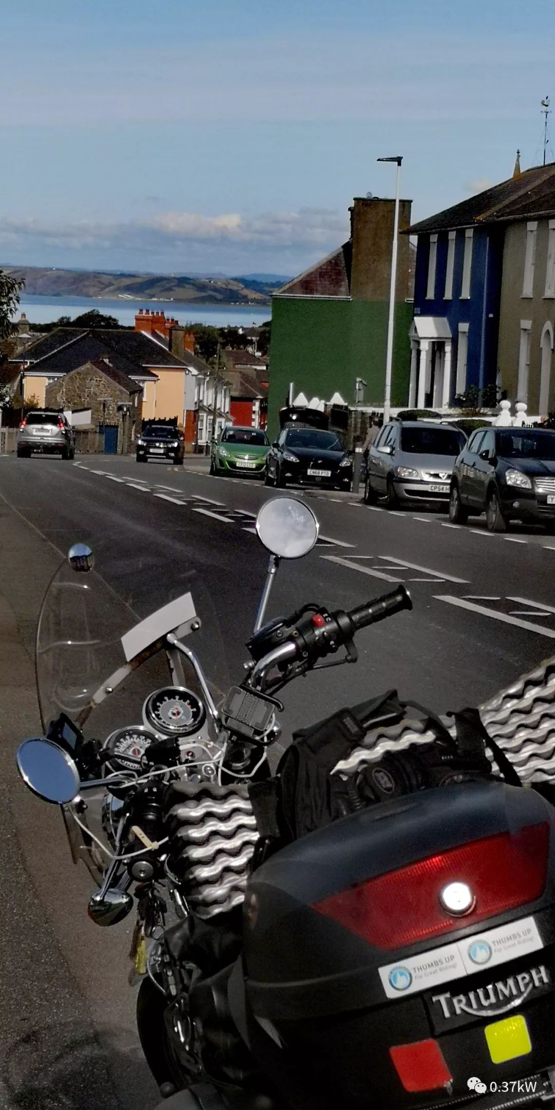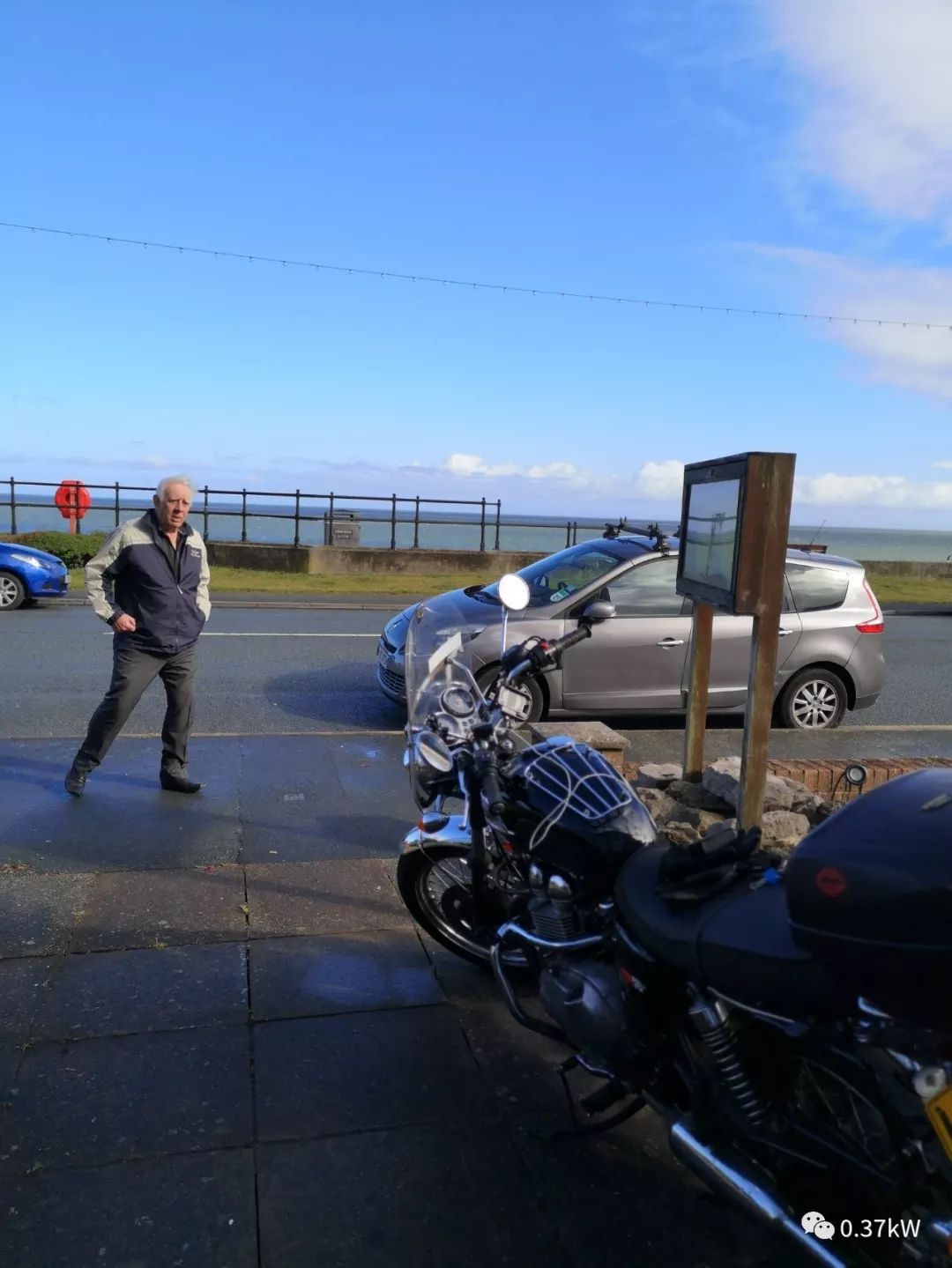 在另一個(gè)海邊休息時(shí)候跟兩個(gè)車友擺龍門陣,合影留念。在英國,騎摩托車的人有一個(gè)默契,迎面而過,會(huì)互相歪下腦袋nod點(diǎn)頭,是一個(gè)bikers之間的打招呼方式,但好像基本沒人跟騎125cc及以下或者自動(dòng)檔踏板的人搖頭打招呼,算一個(gè)不成文的鄙視鏈吧,騎那種小玩意的或者連檔都不用掛的不算biker,哈哈。