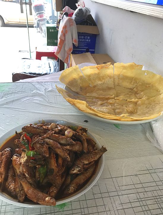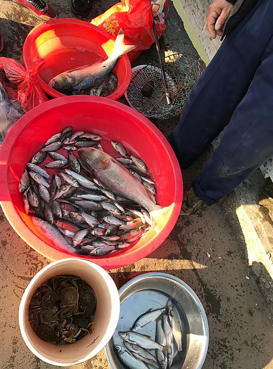 當(dāng)晚趕到了洪澤湖邊的淮安市洪澤區(qū)蔣壩鎮(zhèn)。具體路線是在金湖城東北上石港,再順淮河入江水道西行陳橋,然后從共和奔蔣壩。蔣壩是洪澤湖東岸的一處風(fēng)景地和美食匯集地,鎮(zhèn)境緊鄰煙波浩渺的大湖,鎮(zhèn)南是著名的淮河出湖閘門三河閘,在鎮(zhèn)區(qū)可以吃到各種洪澤湖魚鮮,尤其是小魚鍋貼遠(yuǎn)近聞名,而筆者之所以連夜趕到這里,為的就是趕上第二天上午的這道當(dāng)?shù)孛恕?/span>