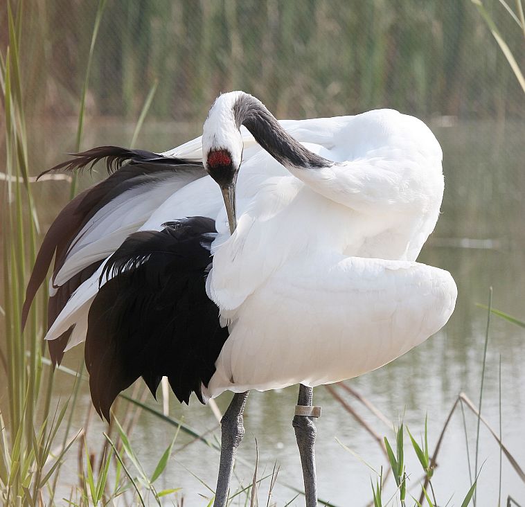 野生丹頂鶴平時(shí)很少能看到,只能去人工飼養(yǎng)區(qū)看圈養(yǎng)的。圈養(yǎng)區(qū)的規(guī)模很大,丹頂鶴的活動(dòng)空間也很寬裕。第一次近距離觀察這種珍禽,多少有點(diǎn)驚訝。驚訝于它們的個(gè)頭比想象得大許多倍——成年鶴足有半人高,體重達(dá)幾十斤。這體態(tài)俊美、舉止優(yōu)雅的精靈在展翅飛翔的時(shí)候該是多么從容和美妙,要不,人們?cè)趺茨芊Q其為仙鶴呢?丹頂鶴,紅頭頂?shù)您Q,它最大的特點(diǎn)就是頭上那塊裸露在外的紅色皮膚。幼鶴的頭頂并不紅,長(zhǎng)到兩歲以后才逐漸發(fā)紅,年齡越大,顏色越鮮艷。丹頂鶴是飛行類動(dòng)物中的壽星,壽命長(zhǎng)達(dá)50年一60年,所以,自古就是民間的吉祥物,多在畫作中與松樹一同出現(xiàn),寓意吉祥、忠貞和長(zhǎng)壽。為了保護(hù)這長(zhǎng)壽的精靈,遠(yuǎn)道而來的東北姑娘卻在這蘇北的荒野中獻(xiàn)出了年輕的生命……
