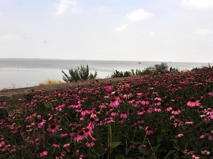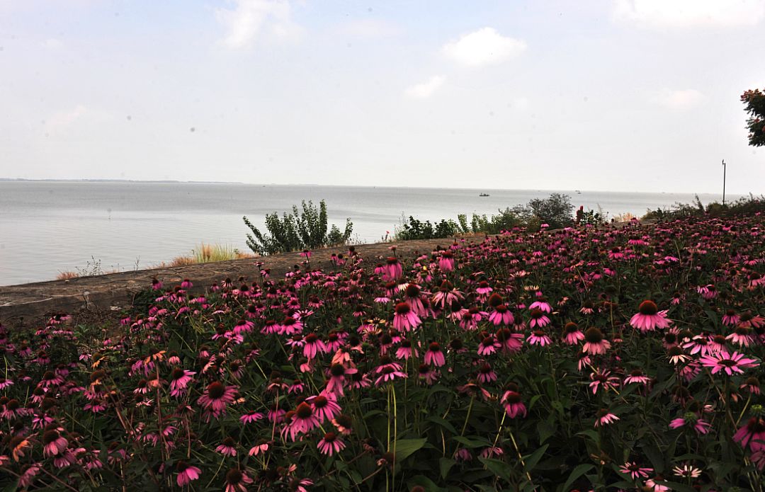 在床車?yán)锼阶匀恍?,快上?/span>9點(diǎn)才出發(fā)。去柳堡之前先在金湖境內(nèi)轉(zhuǎn)了一圈——城東淮河大堤上南行,經(jīng)塔集來到高郵湖大壩,然后沿湖行走經(jīng)漁業(yè)隊(duì)、水上森林公園至332省道,然后就是一路向東了。這段路,前半段大河奔流、綠樹紅花,后半段水天一色、漁船點(diǎn)點(diǎn),實(shí)在是心曠神怡。