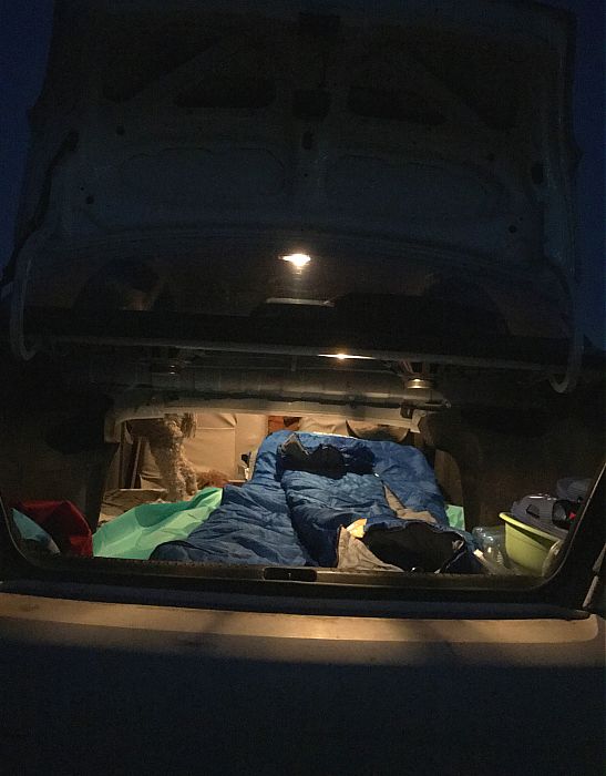 金湖這一夜是筆者首次嘗試汽摩結(jié)合加露營的第一夜,事實(shí)證明這是一種非??尚星沂″X的旅行方式。而且,住在車?yán)锏陌踩砸h(yuǎn)遠(yuǎn)高過帳篷扎營,選址也更容易?,F(xiàn)在,許多摩托車愛好者家里都有汽車,一輛幾萬元的國產(chǎn)SUV型汽車的空間都足夠裝下一輛小型摩托車并能在座椅放倒后成為一張寬敞的雙人床,有這個(gè)條件的車友不妨一試。