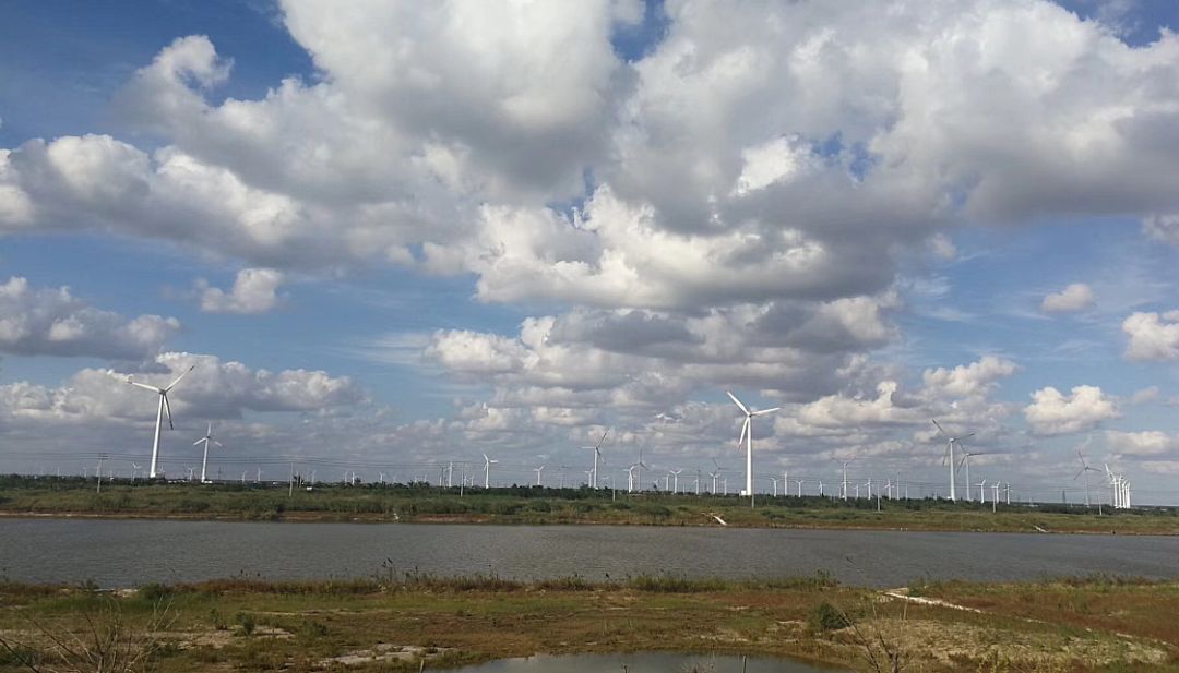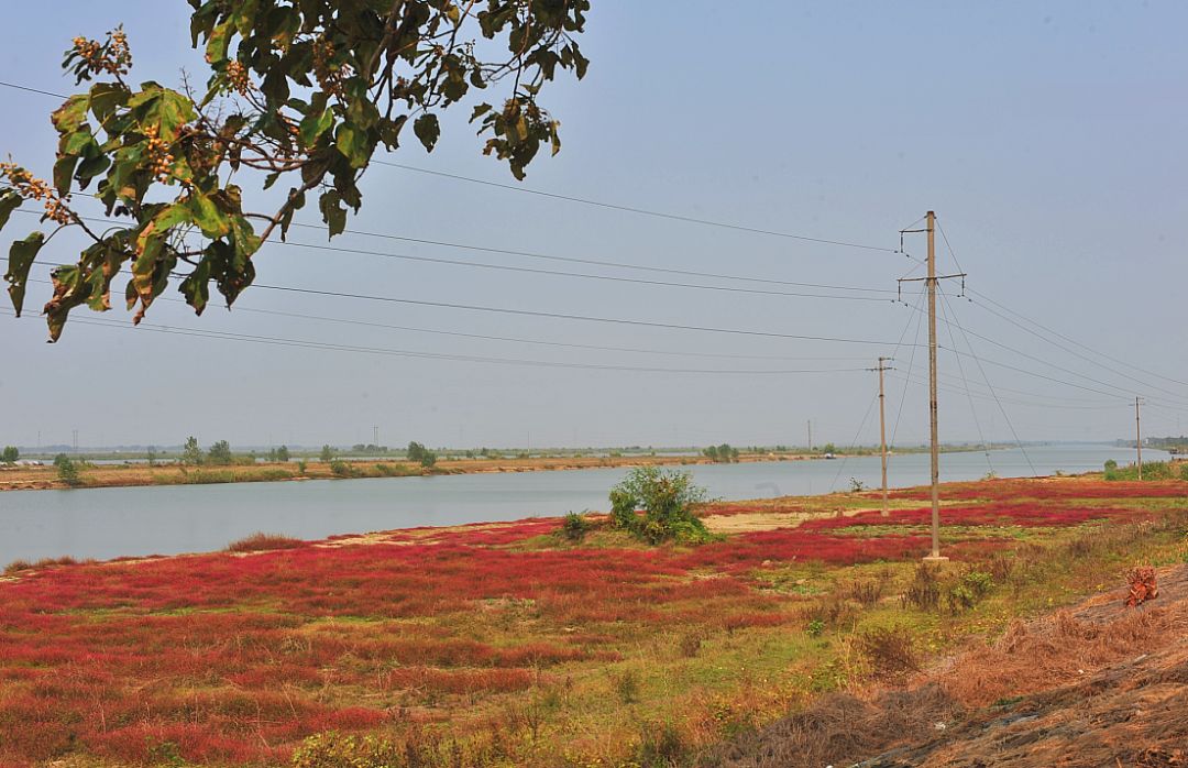 呂四鎮(zhèn)除了海鮮就是沿海灘涂和港口,在風(fēng)景上較為平淡,所以不建議住這里,中午到這里吃過海鮮后繼續(xù)北上,經(jīng)通州灣奔海安縣的李堡方向。這一路均為傍海公路,近水區(qū)域是無邊的蘆葦蕩,外圍則是深秋后泛紅的鹽蒿草,密集的風(fēng)力發(fā)電機(jī)擺著巨大的鳳翅……