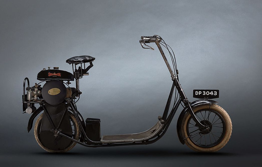 踏板車的雛形出現(xiàn)得很早,如第一次世界大戰(zhàn)后英國的吉爾伯特·康普林公司制造、以ABC公司名義銷售的雛形踏板車,輪子很小,123mL單缸發(fā)動機(jī)安裝在后輪之上,并通過鏈條帶動后輪,最高速度約20km/h。1936年,美國加利福尼亞州的薩爾斯布雷公司開始生產(chǎn)另一種踏板車,很有特色,安裝了自動變速裝置,操作起來很簡單。他們1938年推出的“機(jī)動滑翔”,搭載了約1.1kW的約翰遜單缸發(fā)動機(jī),并配置了CVT傳統(tǒng)系統(tǒng)。