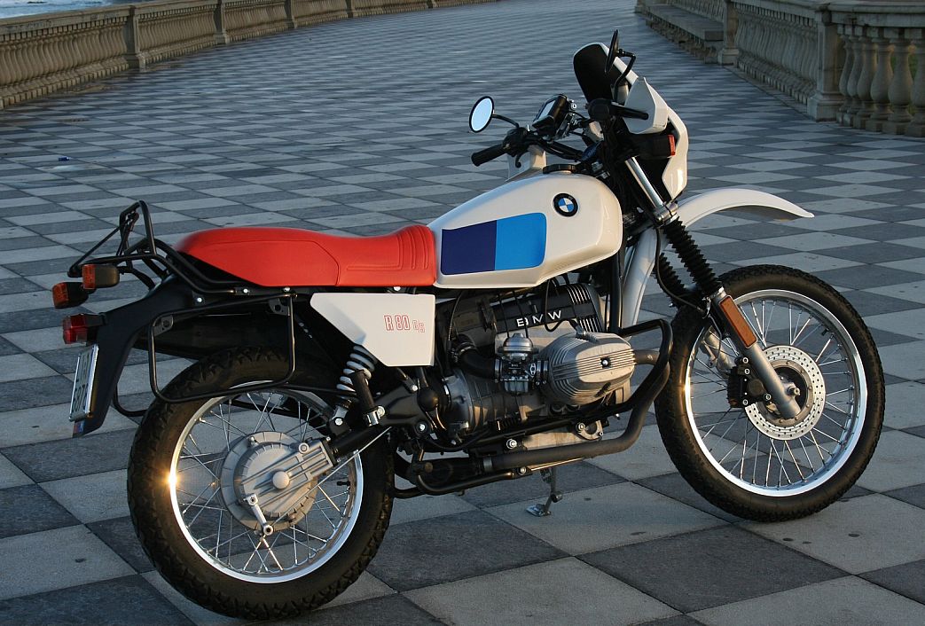 1980年9月1日,寶馬在法國阿維尼翁掀開了R 80 G/S的神秘面紗。這是一款全新類別摩托車,以至于很難將它歸類。與傳統(tǒng)的大型公路摩托車相比,R 80 G/S具備極強(qiáng)的野外生存能力,通過性能極佳;與傳統(tǒng)的越野摩托車相比,R 80 G/S又具備了穿州過府的遠(yuǎn)航能力和霹靂風(fēng)行的疾馳本領(lǐng)。因此,無論是公路,還是鄉(xiāng)村道路,又或者是沙礫戈壁,都難不到R 80 G/S,這點(diǎn)正如它的名字所暗示的:G是德語Gelände的縮寫,表示越野;S是德語Strasse的縮寫,表示街道。G/S的名字表明它的身份是介于公路和越野之間的“兩棲動物”。