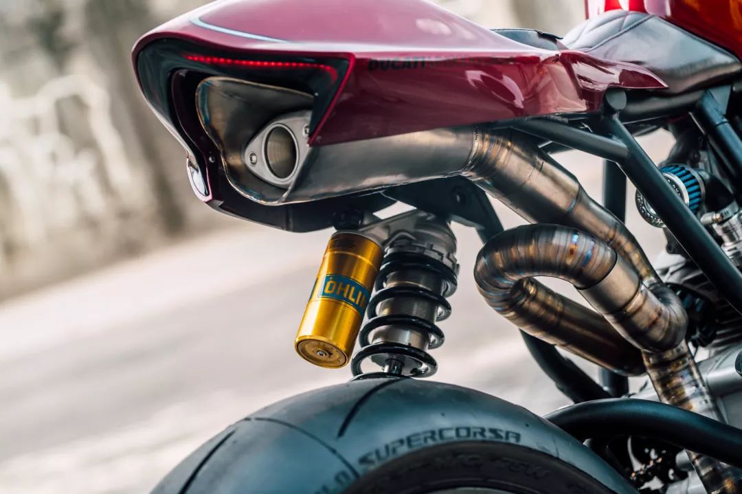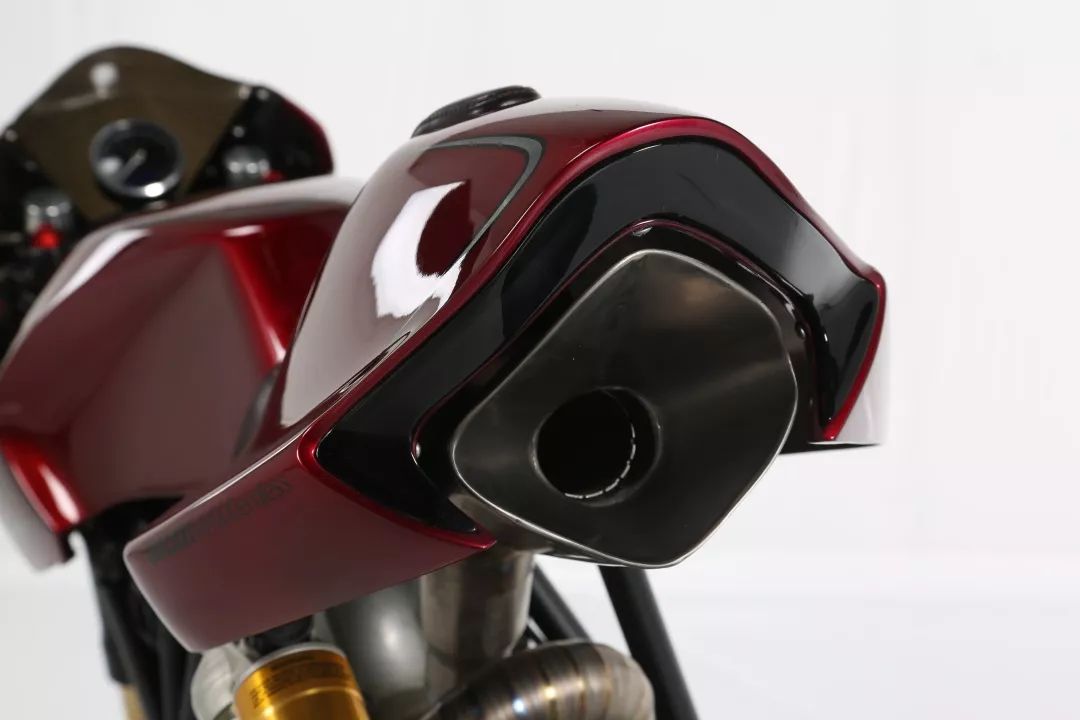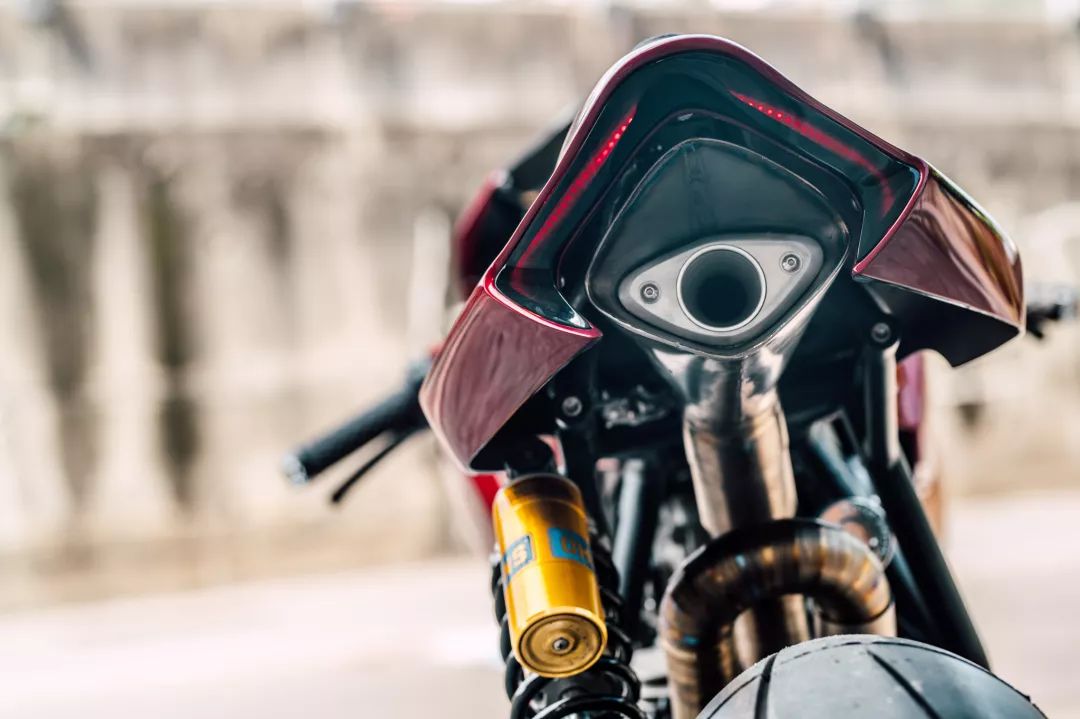 細(xì)節(jié)方面更是極致,前大燈用上了鋁合金材質(zhì)的外殼包覆,尾燈則使用LED燈條作為主視覺,就像是鑲嵌的鉆石,角度、線條與風(fēng)格都精準(zhǔn)到位。Chun同時(shí)也制造了一組全新鈦合金的排氣系統(tǒng),穿過車架并一路延伸至后座蓋下方。