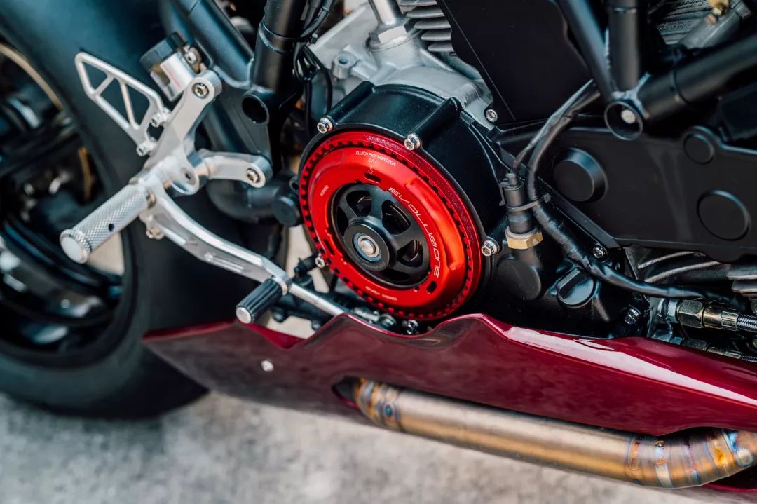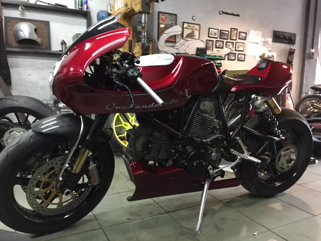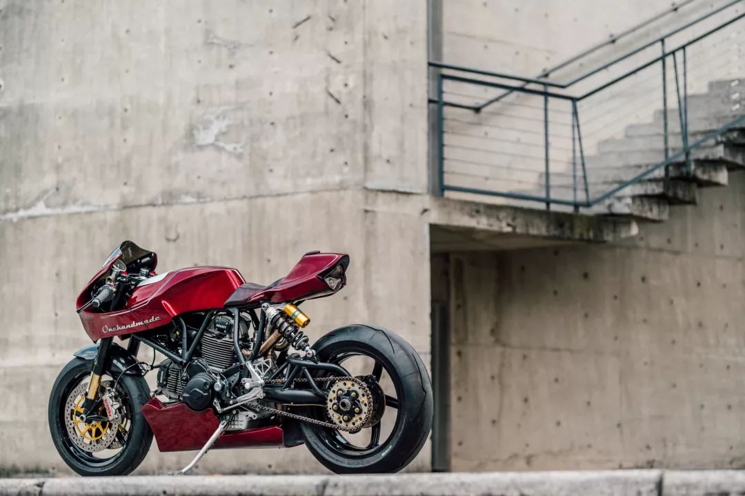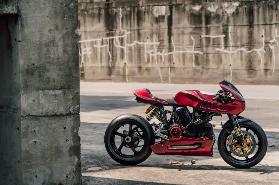 而ONEHANDMADE的工作不僅僅在于外觀上,明顯的升級(jí)還有:前側(cè)一對(duì)來自DUCATI monster 1100S的OHLINS前叉與后避震,Chun也安裝了一組防甩頭與來自1098的BREMBO制動(dòng)系統(tǒng),當(dāng)然,腳上也配了頂級(jí)的PIRELLI Diablo Supercorsa。隱藏的升級(jí)包含了STM離合器、RCE新電池、訂制的三角臺(tái)、Motogadget的儀表盤。
