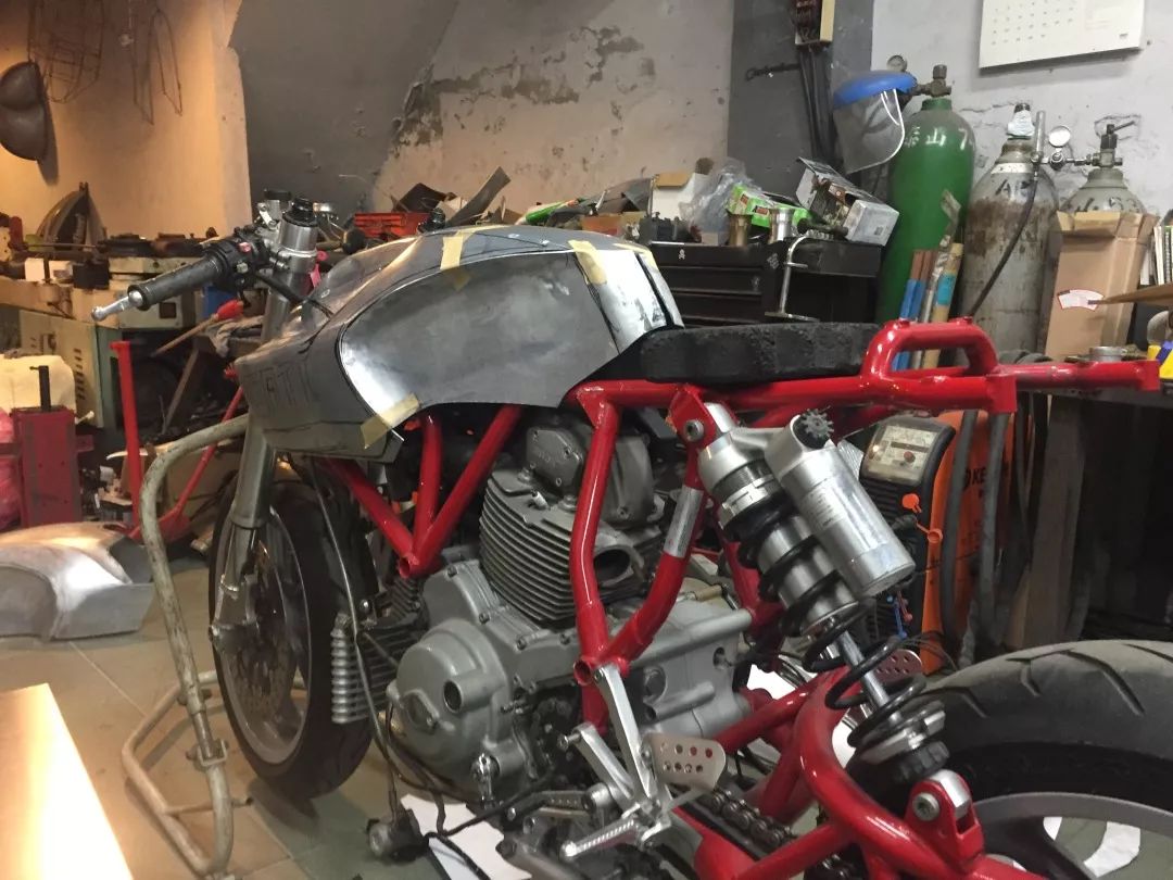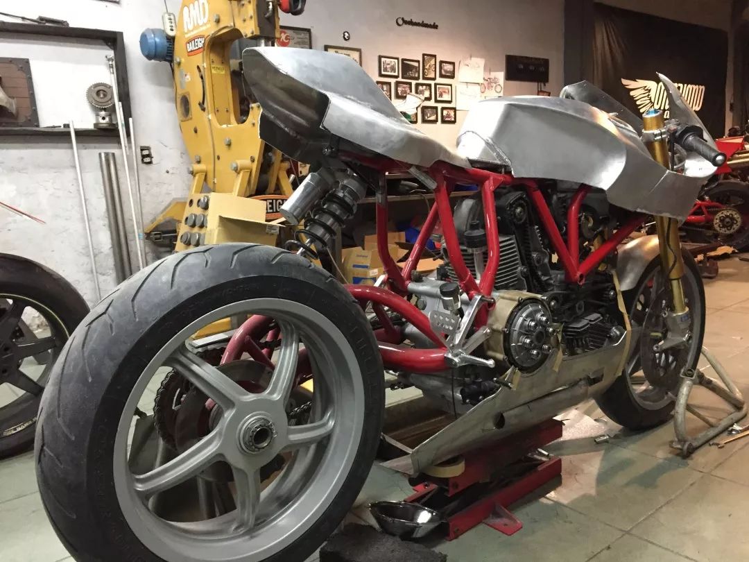 隨著設(shè)計(jì)的逐漸完整,Chun全力投入MH900e的改造-舍棄原有的全部車身外觀,轉(zhuǎn)而采用手工打造的鋁合金導(dǎo)流罩、油箱、車尾以及車底殼。每個(gè)零件都設(shè)計(jì)的完美無瑕、幾乎是無縫接合,就像是原廠設(shè)計(jì)如此。