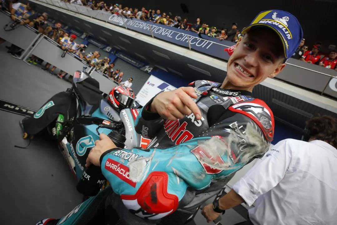 本周的MotoGP開始亞洲巡回,首先登場(chǎng)的是去年加入賽事的泰國站。Marquez在FP1發(fā)生嚴(yán)重的摔車,車幾乎全毀,人也進(jìn)醫(yī)務(wù)站觀察。但即便如此,仍然在排位賽當(dāng)中勇奪第三,在頭排起跑。今年的桿位數(shù)量第二多的Quartararo這站連續(xù)兩圈打破場(chǎng)地最速紀(jì)錄,奪得桿位,YAMAHA廠隊(duì)的Viñales則拿下第二。