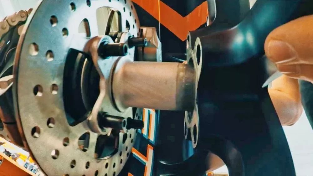 采用了后單搖臂,賽車專用的光頭胎(200 的寬度),高性能的后懸掛,碳纖維組件,從這些有限的畫(huà)面信息中判斷,該新車估計(jì)是新一代的 1290 Super Duke R。