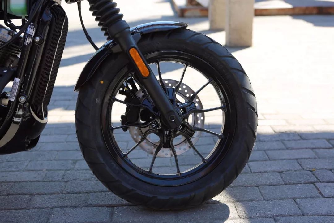 首先是這款車的軸距,1428mm的軸距相比傳統(tǒng)巡航車要小很多,當(dāng)然短軸距也和Bobber的風(fēng)格相契合。同時GV300S采用的是前16寸后15寸的輪轂配置,結(jié)合短軸距的車架,讓這款車看起來少了幾分巡航車的霸氣,但正是因為這樣的設(shè)計,才為這款車提供了一個其它巡航車所無法比擬的駕駛質(zhì)感。
