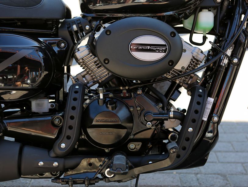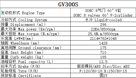 最后是發(fā)動機,GV300S采用的是V型雙缸SOHC 8氣門水冷發(fā)動機,夾角設(shè)計為60°,更小的夾角讓發(fā)動機體積更小,有利于縮短軸距的同時也能提供更好的低扭,最大功率22.1kW(8500/min),最大扭矩25.6N·m(6500r/min),配合后輪的52齒大牙盤以及鏈條傳動,讓小排量巡航車也能有讓人印象深刻的加速體驗。