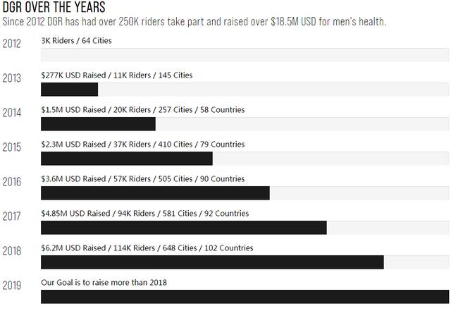 今年是DGR全球活動的第七年。在英國機(jī)車品牌TRIUMPH和MOVEMBER基金會及其他全球贊助商品牌的支持下,來自全球 678個(gè)城市的115702名騎士,用騎行的方式為男性健康公益募捐超過580萬美元!這其中就包括來自中國12座城市的1273名注冊騎士們募捐的7000美元善款。無論參與城市、人數(shù)還是捐款,都創(chuàng)造了國內(nèi)騎士參與DGR全球活動的新高!