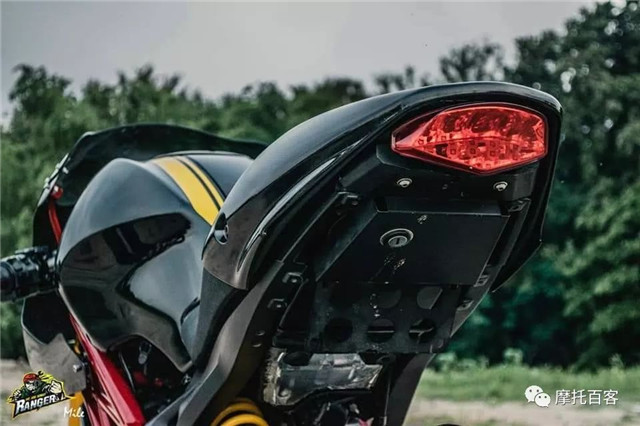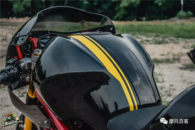 從側(cè)后方來(lái)看,整流罩的位置加的剛剛好,油箱的線條就像戰(zhàn)士聳起的肩胛骨,一股力量隨時(shí)會(huì)噴薄而出。