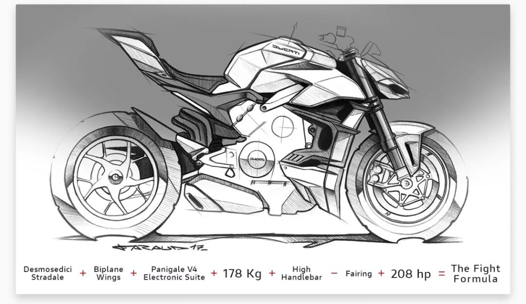 你可以將Streetfighter V4看作是去掉整流罩的Panigale V4,因為它是由Panigale V4演變而來。前臉的設(shè)計一方面前臉的設(shè)計能讓你想到Panigale的頭燈造型,同時也能讓你想起小丑(Joker)的笑容,這也是杜卡迪首次從漫畫人物中汲取靈感。其它方面車架和Panigale V4基本相似,只是在一些細節(jié)上針對街車屬性進行了調(diào)整,比如坐墊厚度的增加優(yōu)化了舒適性,車把高度也進行了調(diào)整,以提供更好的騎乘三角。