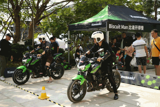 川崎設(shè)置了獨(dú)特的摩托試駕區(qū)。除了最新上市的W800,更有各個(gè)系列經(jīng)典款車型集體亮相。所有試駕車全部開放,讓騎士們可以自由選擇,享受騎行樂趣并能更直觀地感受川崎摩托的魅力。