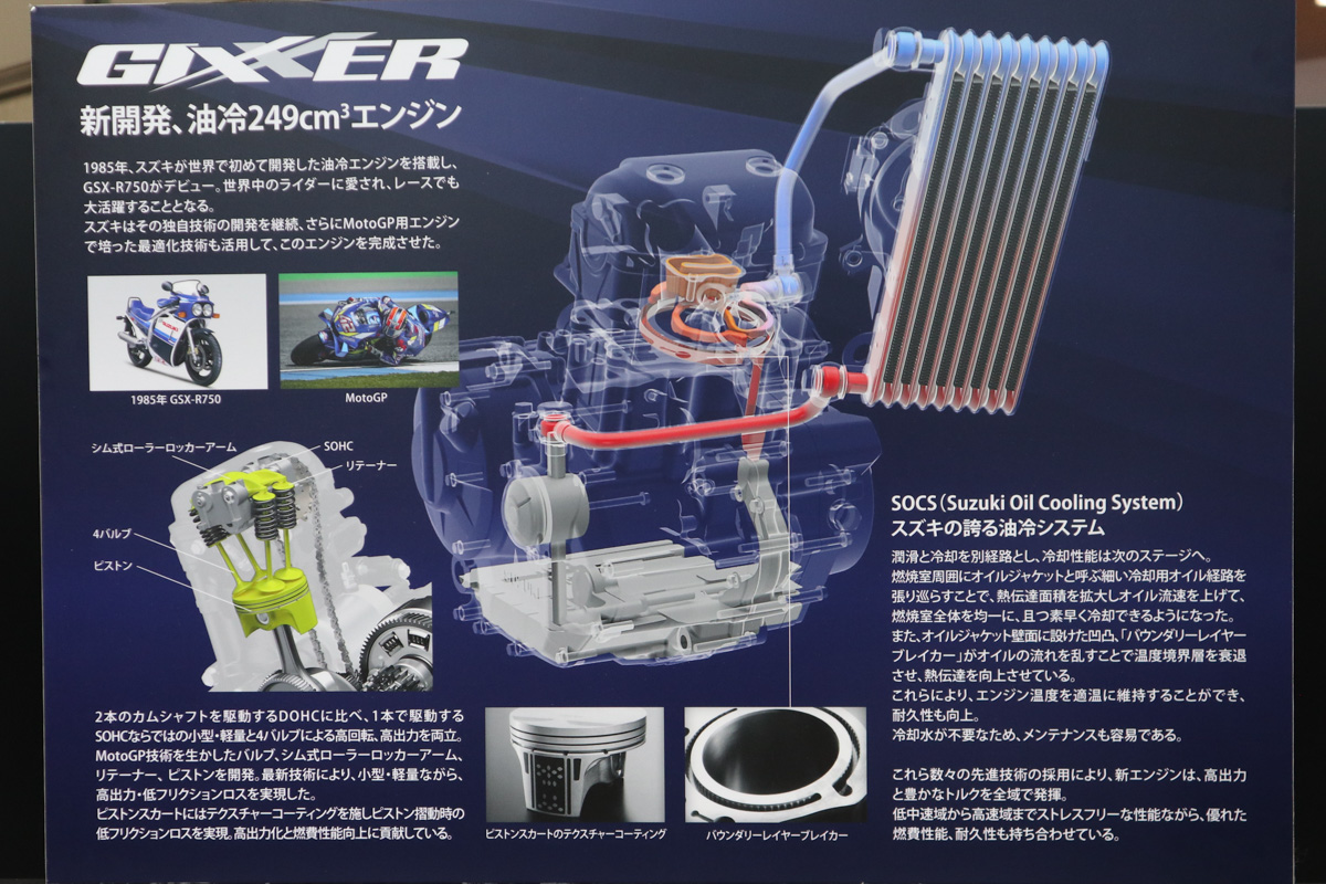 本次2019東京車展,鈴木發(fā)表了兩臺搭載了新的SOCS油冷式單缸發(fā)動機(jī)的250cc車型,分別是GIXXER SF 250與GIXXER 250。GIXXER SF 250系列早已在東南亞市場上市,至今才正式在日本發(fā)布。