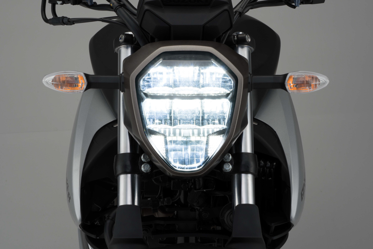 GIXXER 250同樣采用LED燈組的頭燈,造型更加方正更接近街車的設(shè)定。同時(shí)這兩輛車的前后燈具都采用LED燈組,節(jié)能且提高夜間行車安全。
