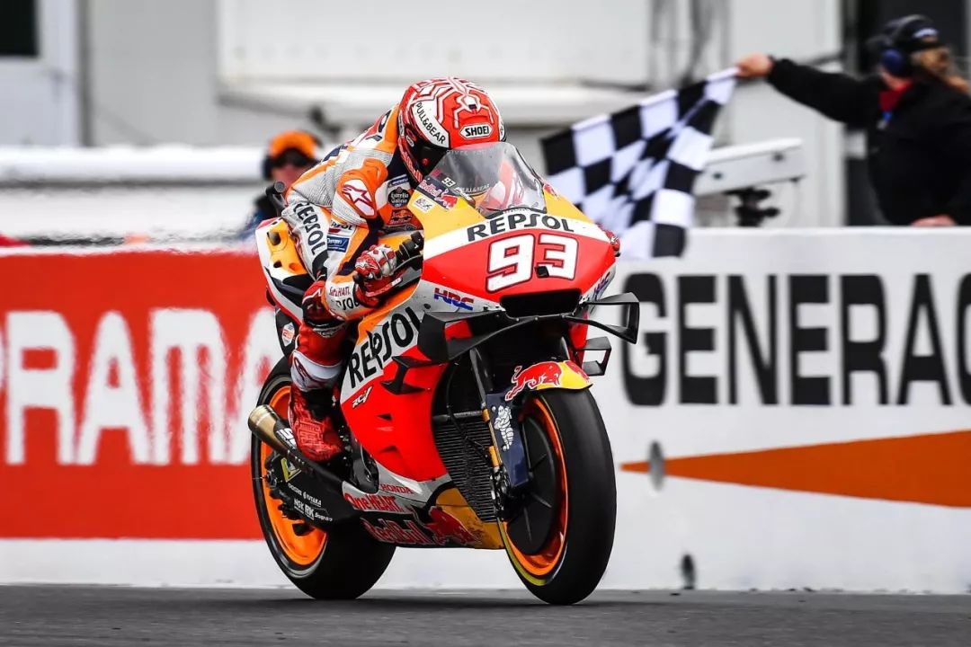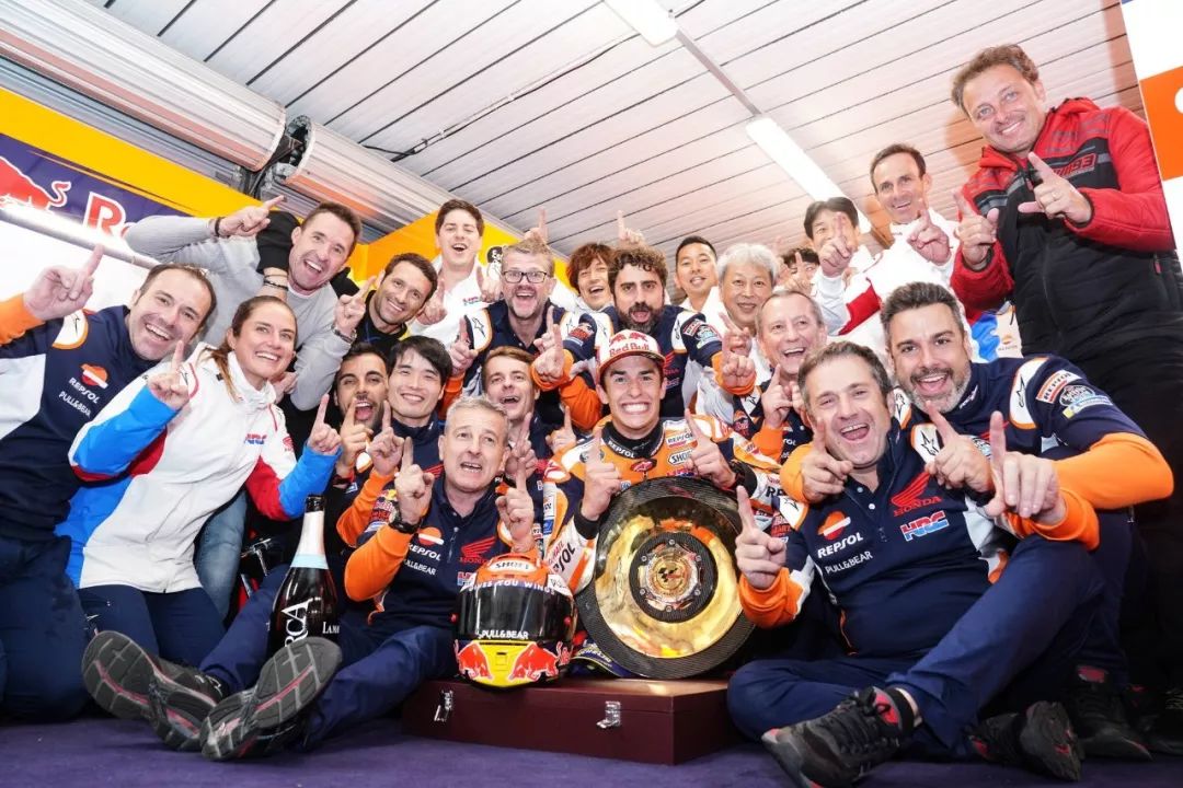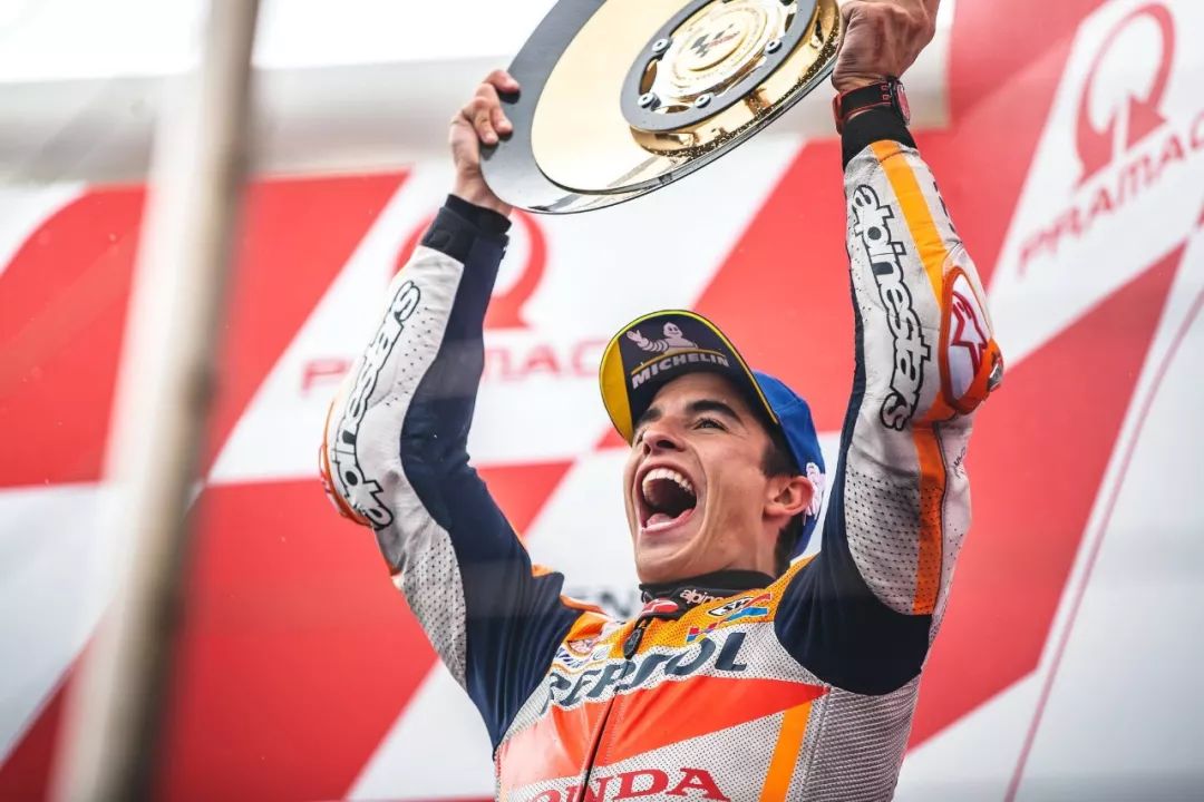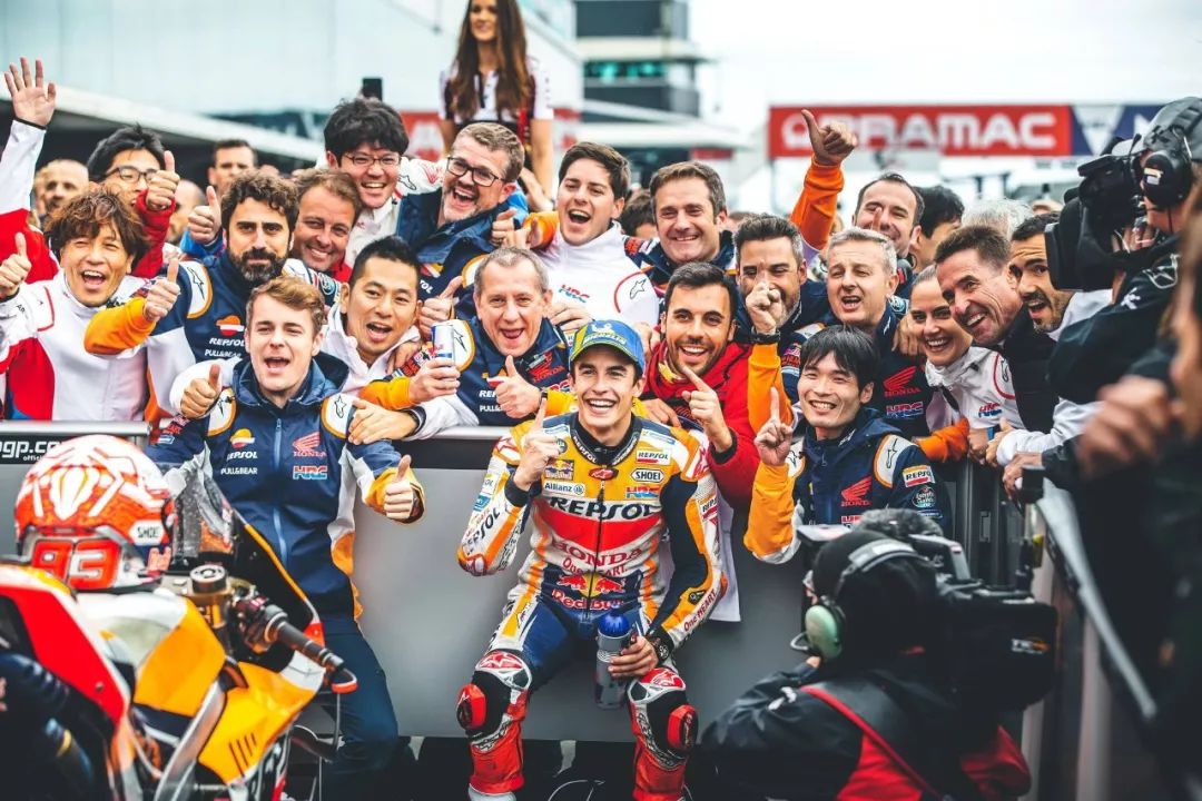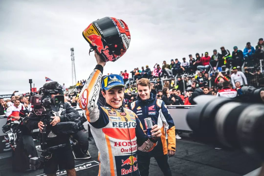 賽后,馬昆斯表示,“ 這個周末的天氣和一切都很糟糕。維尼艾利今天跑得很快,但我能跟著他,開始慢慢地去創(chuàng)造勝利。維尼艾利在開始的時候,非常用力和快速地推進,但我知道、如果我能和他保持四、五圈,那么奪取勝利是有可能的。Repsol-Honda 車隊在有限的賽道時間里完成了出色的工作,最后我們不得不選擇用軟的后胎賭一把,(比賽中)它已經(jīng)用到了極限,但我們最終還是贏了!和 Honda 一起贏得第 55 場的勝利真的很特別,我對 Honda 這個大家庭感到難以置信,我很高興能和他們、和車隊一起享受這一刻。”