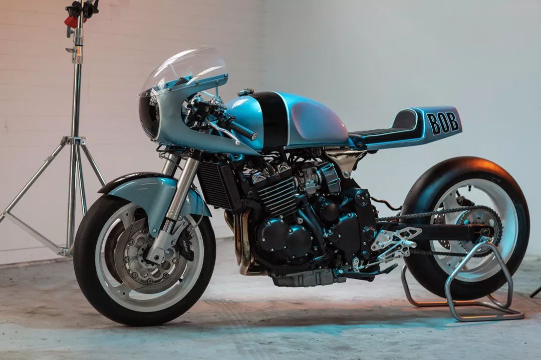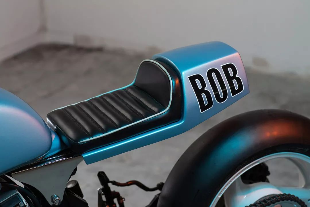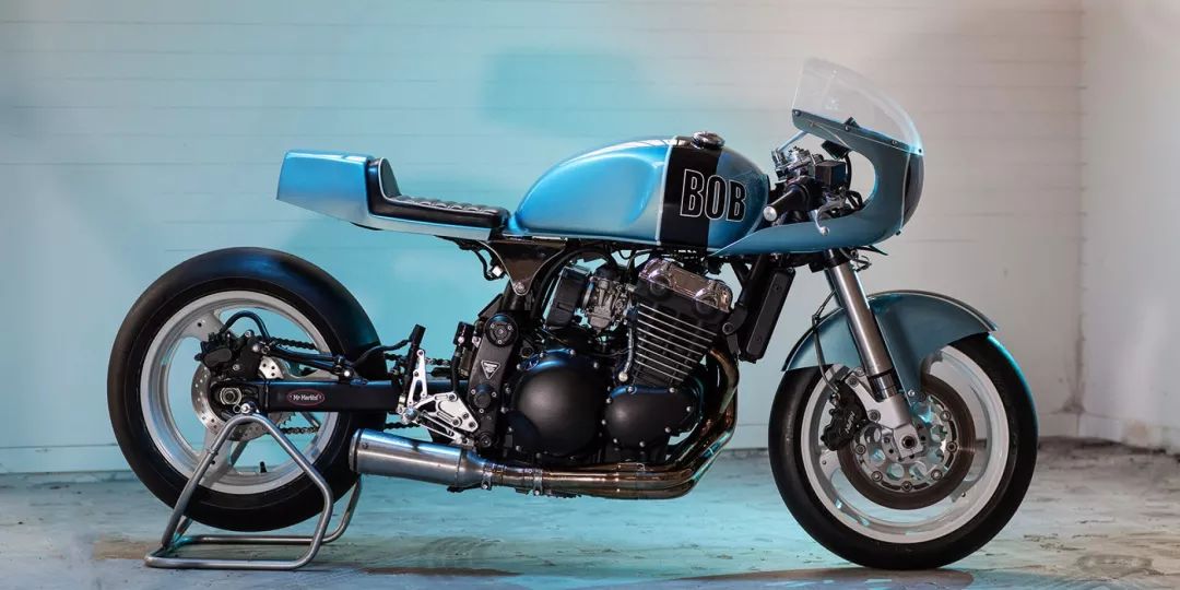 這臺(tái)Triumph Legend TT"Bob"將老英式賽車與直線加速車完美結(jié)合,車身涂裝以黑色與天藍(lán)色為主調(diào),顏色比例在分布上也相當(dāng)勻稱,相信這臺(tái)老英車即便未來(lái)不再參與賽事,小改搖臂與排氣也會(huì)是一杯濃醇香的英式老咖啡。