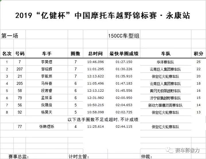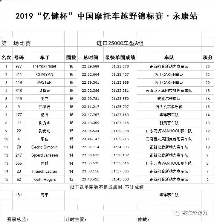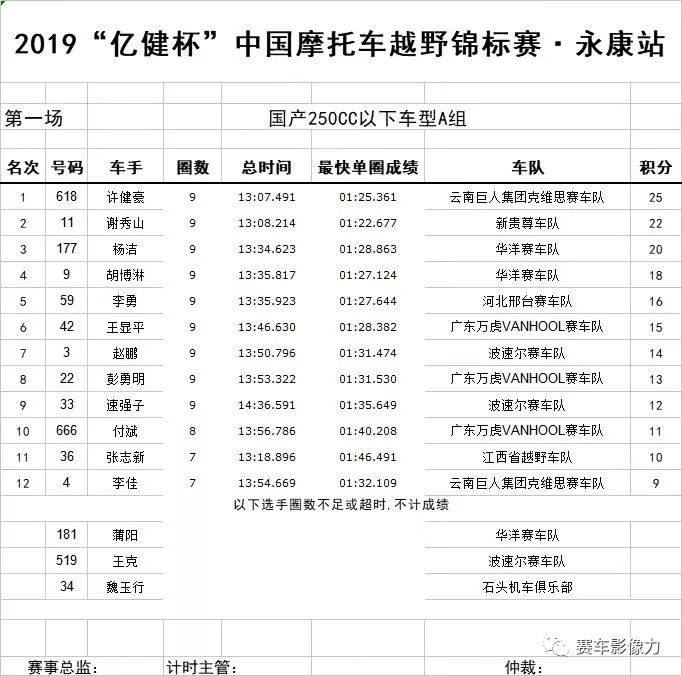 在今日競爭最激烈的進口250cc的A組比賽中,經(jīng)過激烈的爭奪,前三名均被國外車手獲得。國內(nèi)車手中,來自云南巨人車隊、國內(nèi)越野摩托車比賽六連冠的許健豪以三秒之差獲得了第四名。賽后,許健豪略帶遺憾地說道:“比賽中本是有希望超越前方第三名的外國車手,可惜最后一圈車輛打滑摔了一下,損失了不少時間,有點遺憾。好在是預賽,爭取明天跑出好成績,爭取站在領(lǐng)獎臺上,彌補今天遺憾。