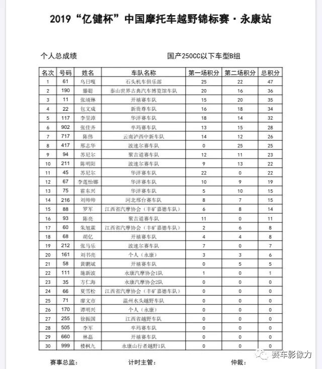 10月27日, 2019“億健®杯”中國(guó)摩托車越野錦標(biāo)賽(永康站)在浙江省永康市龍山鎮(zhèn)龍川文化園完美收官。來(lái)自全國(guó)各地的35支車隊(duì)、150多名參賽車手經(jīng)過3天的激烈角逐,8個(gè)項(xiàng)目的冠軍各有歸屬,比賽圓滿落幕。