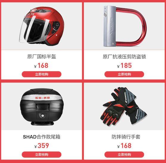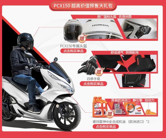 包括PCX專屬頭盔、四季手套、進(jìn)口機(jī)油等,