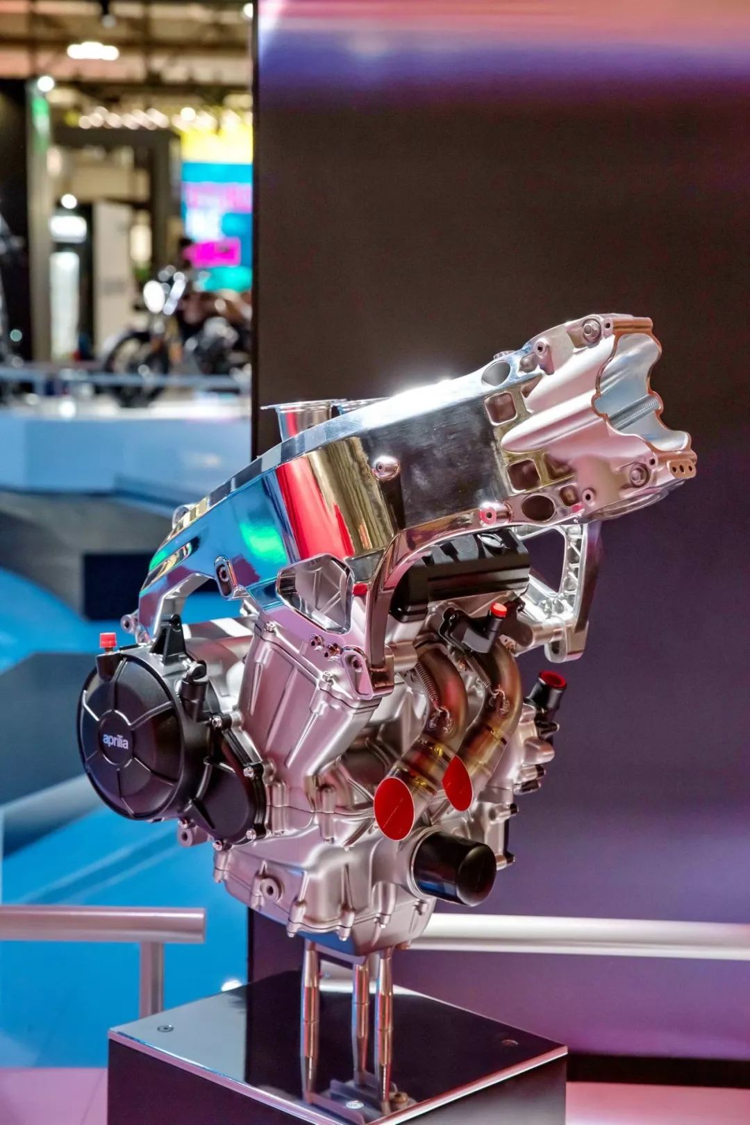 下面的圖片,去年的 EICMA 2018 米蘭車(chē)展,阿普利亞首次展示 RS660 概念車(chē)及其搭載的直列兩汽缸發(fā)動(dòng)機(jī)(資料圖片)。