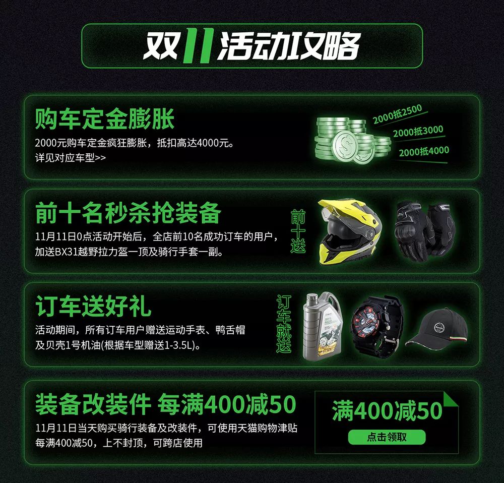 *雙11當(dāng)天,頭盔、改裝件等更多商品再享折上折