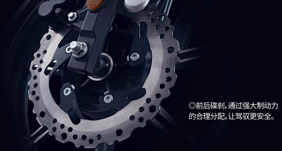 前制動(dòng)為276mm單盤(pán)+雙活塞卡鉗,后制動(dòng)為220mm單盤(pán)+單活塞卡鉗,沒(méi)有配備ABS比較遺憾,但是看看這個(gè)價(jià)格也釋然了。
