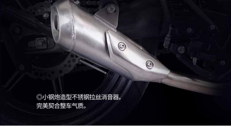 家族式的不銹鋼拉絲表面的金屬短排氣,契合整車(chē)設(shè)計(jì)風(fēng)格。