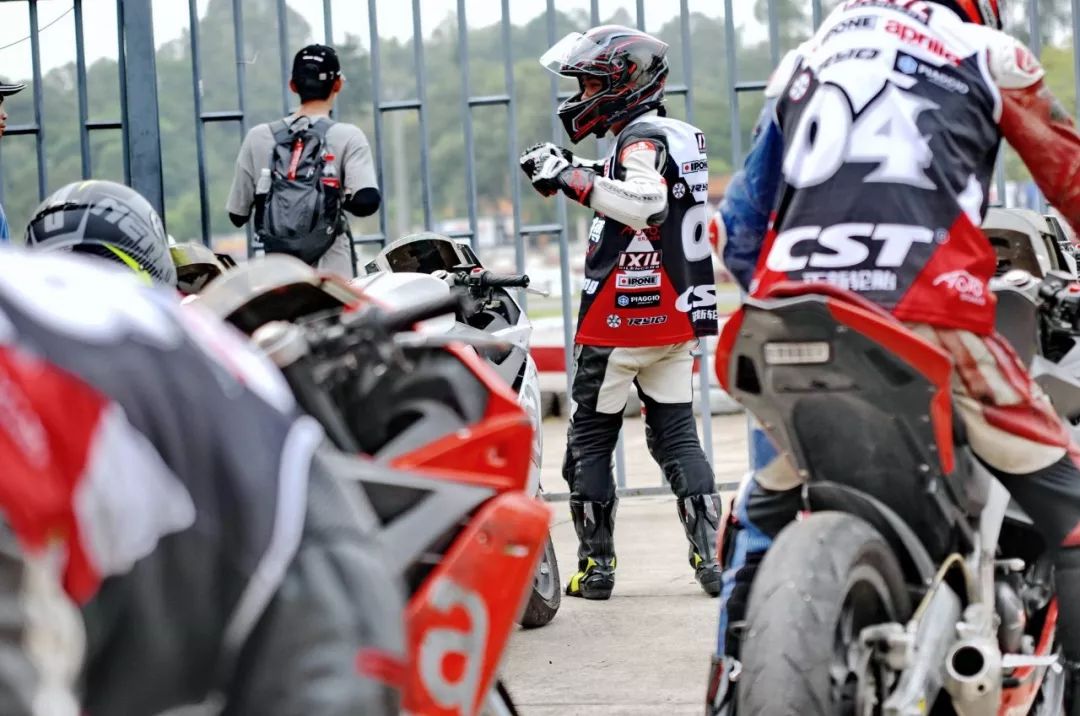 與第一天自由練習(xí)的時(shí)候相比,從計(jì)時(shí)練習(xí)開(kāi)始,學(xué)員們?cè)谫惖郎系膭?dòng)作、出現(xiàn)了一個(gè)重大的變化:從之前的小心翼翼甚至是有點(diǎn)僵硬的姿勢(shì),一下子變得多少都帶著自信、對(duì)高速進(jìn)彎也不再畏首畏尾。估計(jì)這是學(xué)員們開(kāi)始對(duì)于進(jìn)彎點(diǎn)、重剎點(diǎn)的選取、感受輪胎抓地力的極限點(diǎn)等等,已經(jīng)從最初的模糊不清,逐漸地建立起概念。