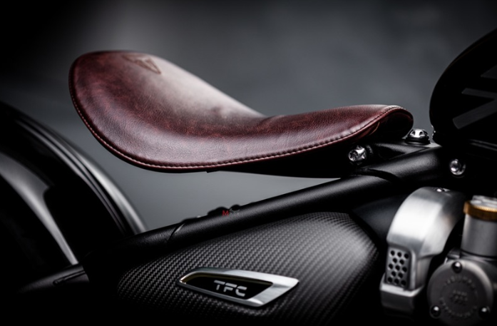 除了標準Triumph Bobber的固有樣外觀外,Bobber TFC 2020限量版在碳纖維組件(如前后擋泥板),和油箱上還涂有英國國旗圖案,并帶有金色飾邊。