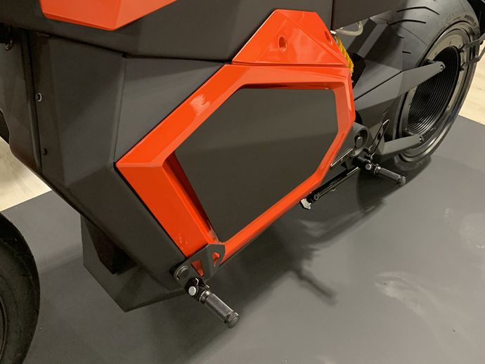 Verge TS在高速上的續(xù)航里程為200km,在城市路況下續(xù)航里程300km,配備DC快速充電系統(tǒng)。配置方面,采用Öhlins懸架和Brembo制動(dòng)器,另外值得一提的式,廠家安裝了兩組駕駛位的腳踏,能提供兩種不同的騎乘姿態(tài),可以像美式巡航一樣來騎,也可以用很直立的街車姿態(tài)來騎。