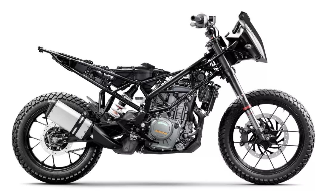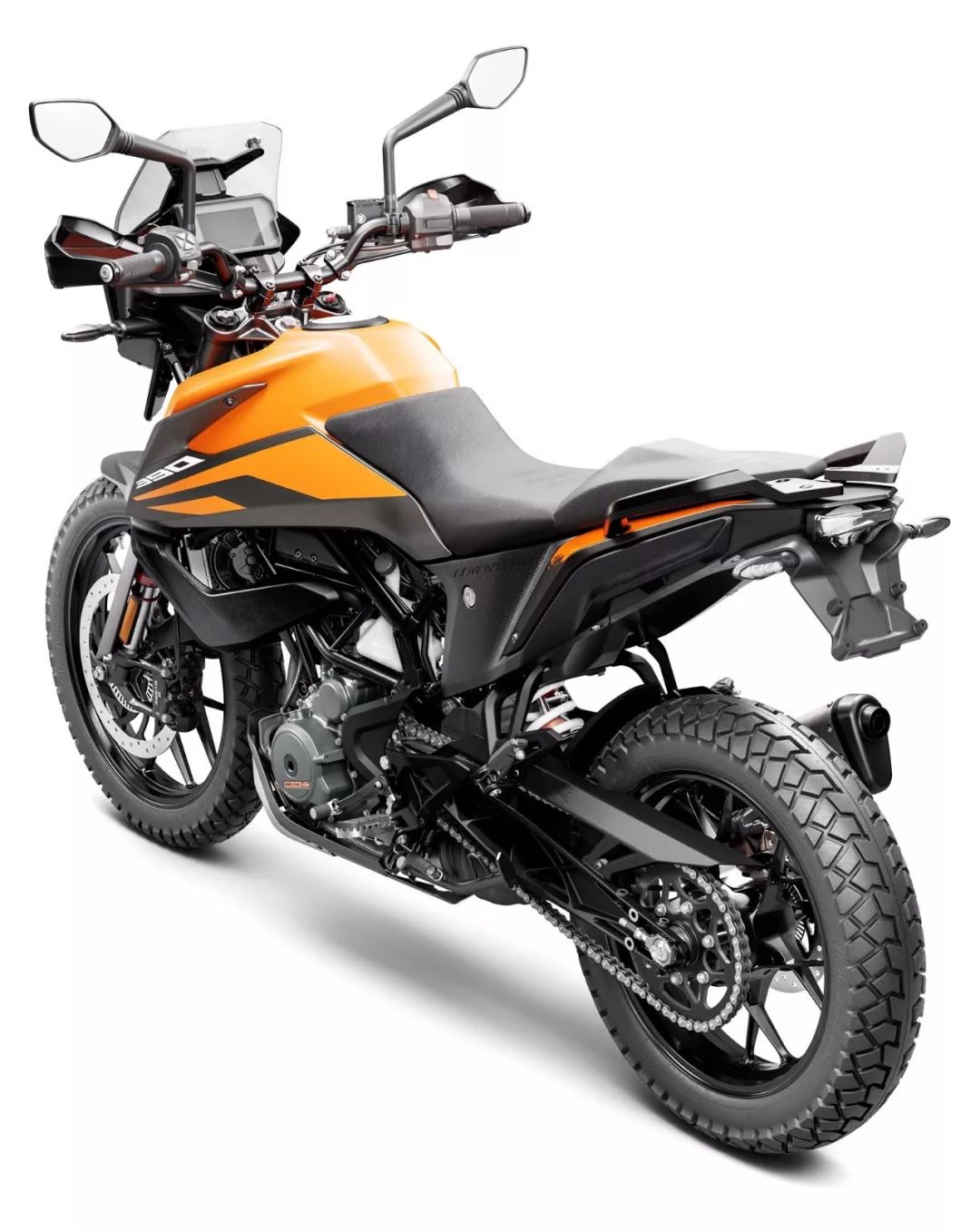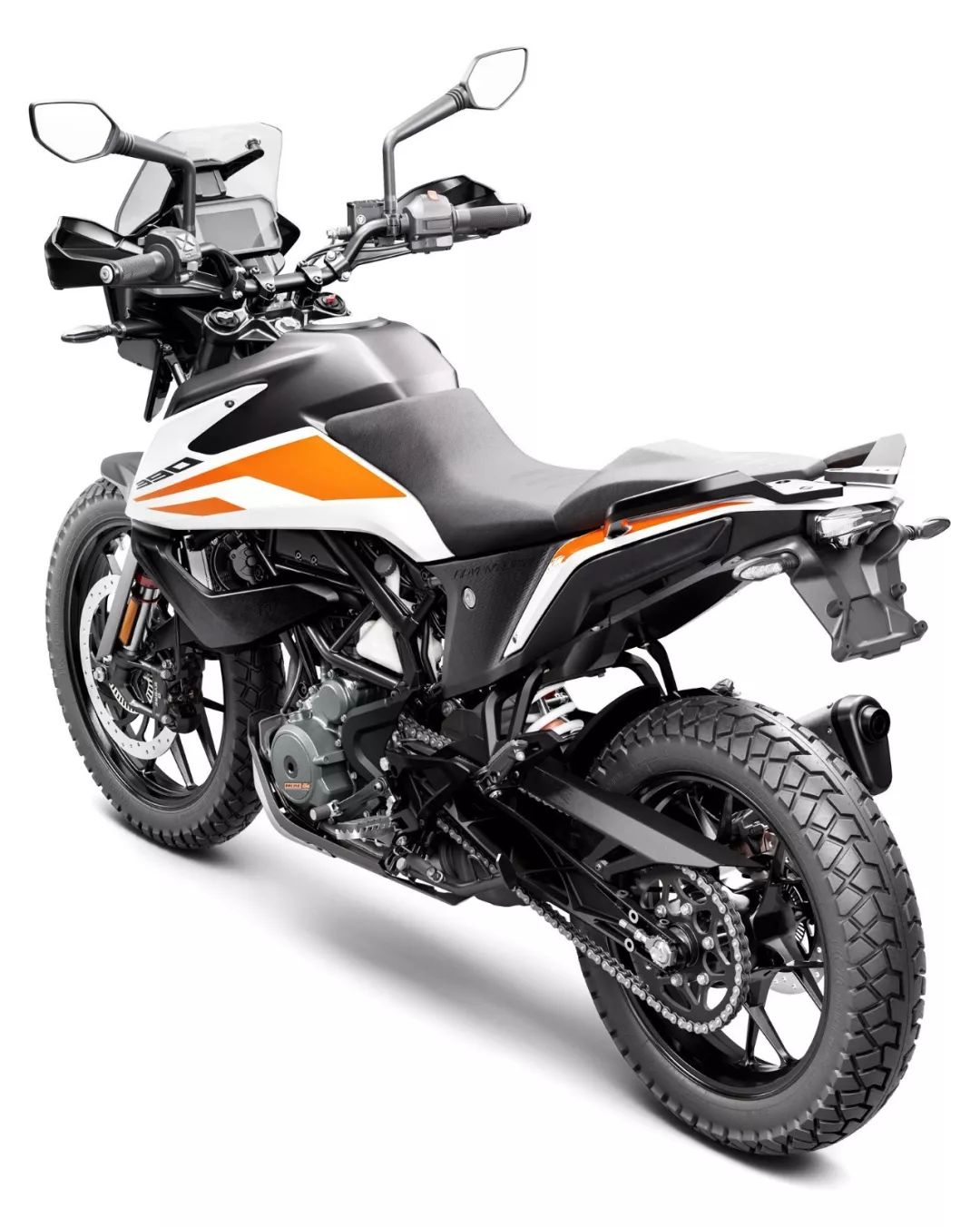 車體采用一副來自達(dá)喀爾工廠賽車 KTM 450 Rally 參賽多年來、技術(shù)積累之下的鋼管式車架,長行程的前后懸掛系統(tǒng)(前叉行程 170 mm、后減震行程 177 mm,而街車版的 Duke 390 分別為 142 mm、150 mm),標(biāo)配了來者 Bosch 博世的 9M + 雙通道、帶越野模式的 ABS 防鎖死制動系統(tǒng),數(shù)字式的儀表板,858 mm 的座位高度(歐洲版),158 公斤的干燥重量(Duke 390 的干燥重量為 149 公斤)。