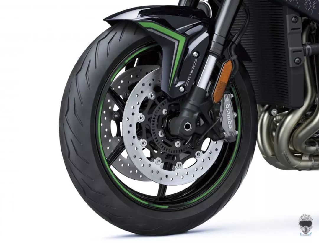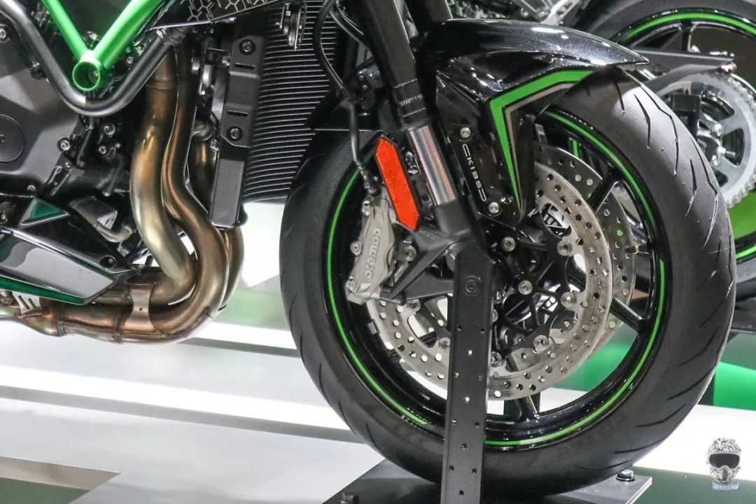 硬件配備方面當(dāng)然也不會(huì)失望,王者的動(dòng)力還須王者的制動(dòng)效果才能匹配,Z H2的前剎車配備的是競(jìng)技等級(jí)的Brembo M4 Monobloc calipers一體式卡鉗,搭配290mm的碟盤。后方則采用雙活塞卡鉗搭配226mm碟盤。同時(shí),制動(dòng)系統(tǒng)將由KIBS(KAWASAKI智能防鎖死剎車系統(tǒng))控制,該系統(tǒng)通過(guò)中央IMU運(yùn)行,有助于防止后輪抬起并保持穩(wěn)定性。