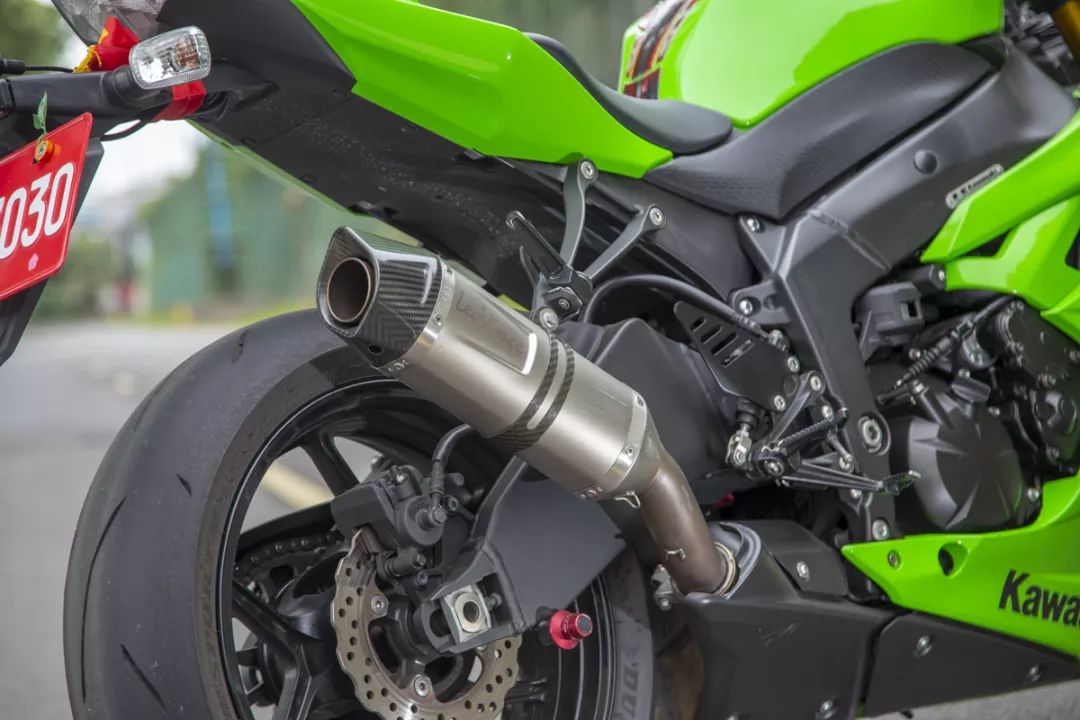 為ZX-6R改裝了LEOVINCE的尾管,與增加傾角操控性的腳踏后移組