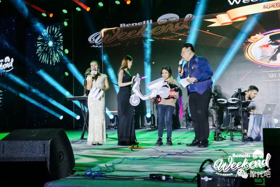 貝納利為了感謝消費者和廣大車友們的支持在晚會現場送出了四輛摩托車,支架 射燈等福利。
