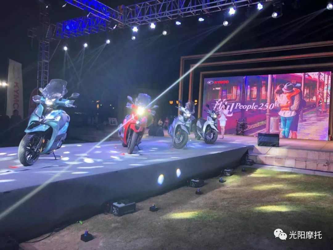 晚會現(xiàn)場光陽舉辦了新品People 250新色發(fā)布會。四款新車色:時尚藍、霧閃紅、寶石捷灰、霧鉆銀。