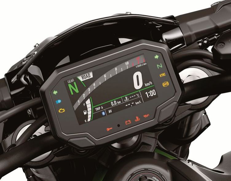 新款Z900外觀上采用了和自家新發(fā)布的機械增壓旗艦街車Z H2相似的設(shè)計語言, 尤其是車頭部分的大燈設(shè)計,縮短之前向下拉長的大燈,將左右兩側(cè)的燈殼去除,打造出更有侵略性和張力的大燈。前后燈光及轉(zhuǎn)向燈也都換為LED光源,進一步增加了Z900的科技感。儀表在這次也得到了升級,換為川崎新一代的全彩TFT液晶儀表,顯示信息更全,包括導(dǎo)航、手機來電、電子郵件等內(nèi)容,且支持與手機之間的藍(lán)牙連接,并可在川崎專屬的APP上查看愛車信息。