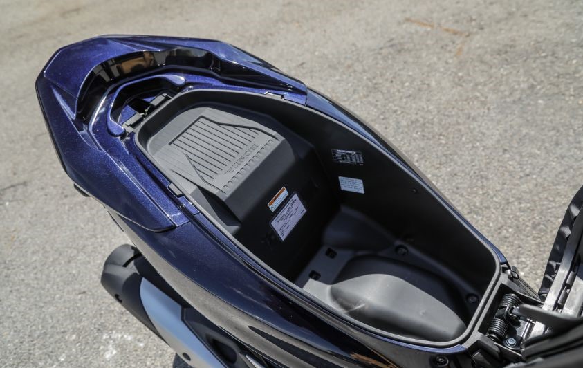 一旦打開,騎手就可以看到電池倉(cāng)。但是,轉(zhuǎn)向鎖和防盜鎖仍處于鎖定狀態(tài),并且仍需要使用密鑰卡來解鎖和啟動(dòng)PCX。